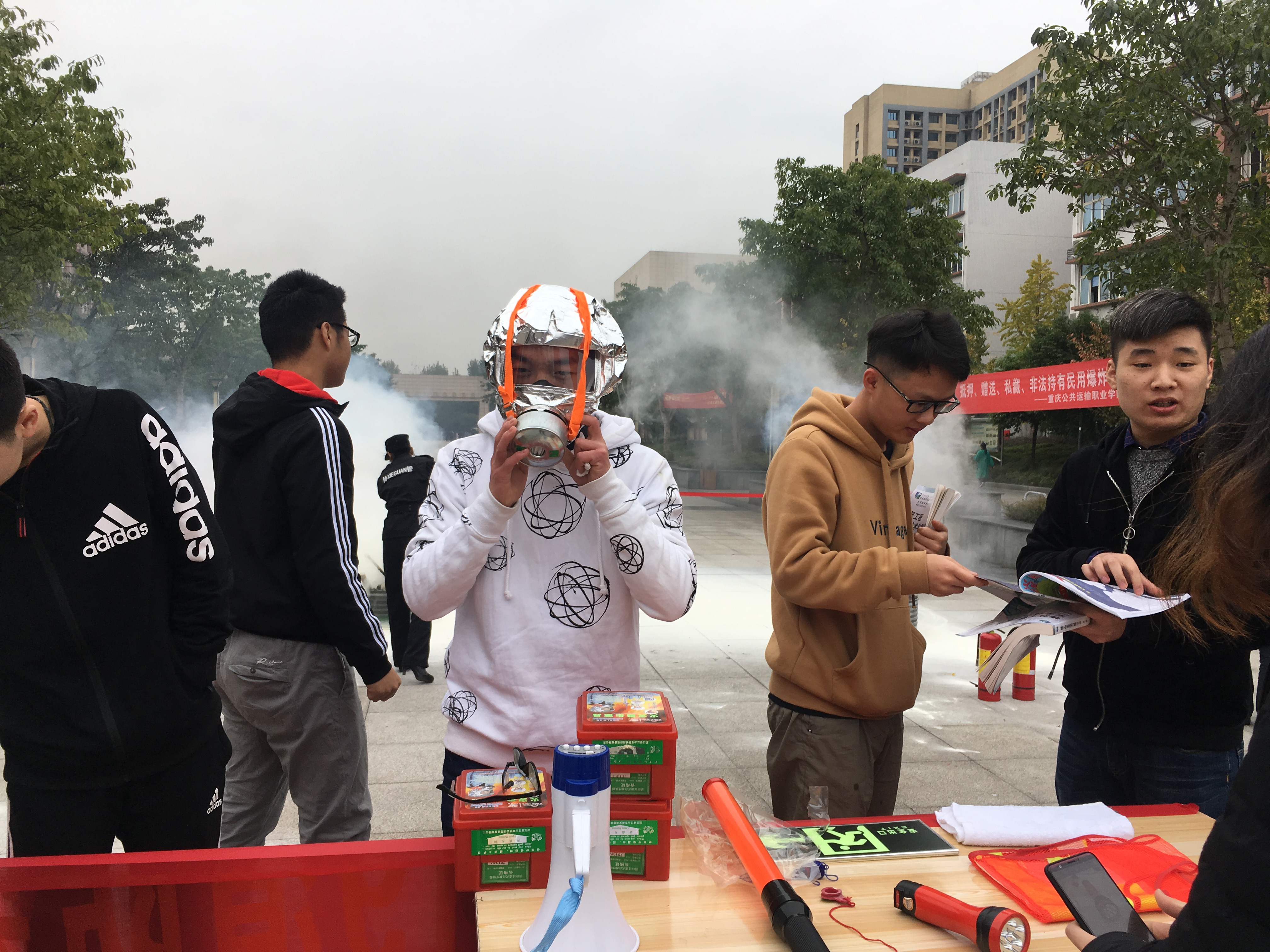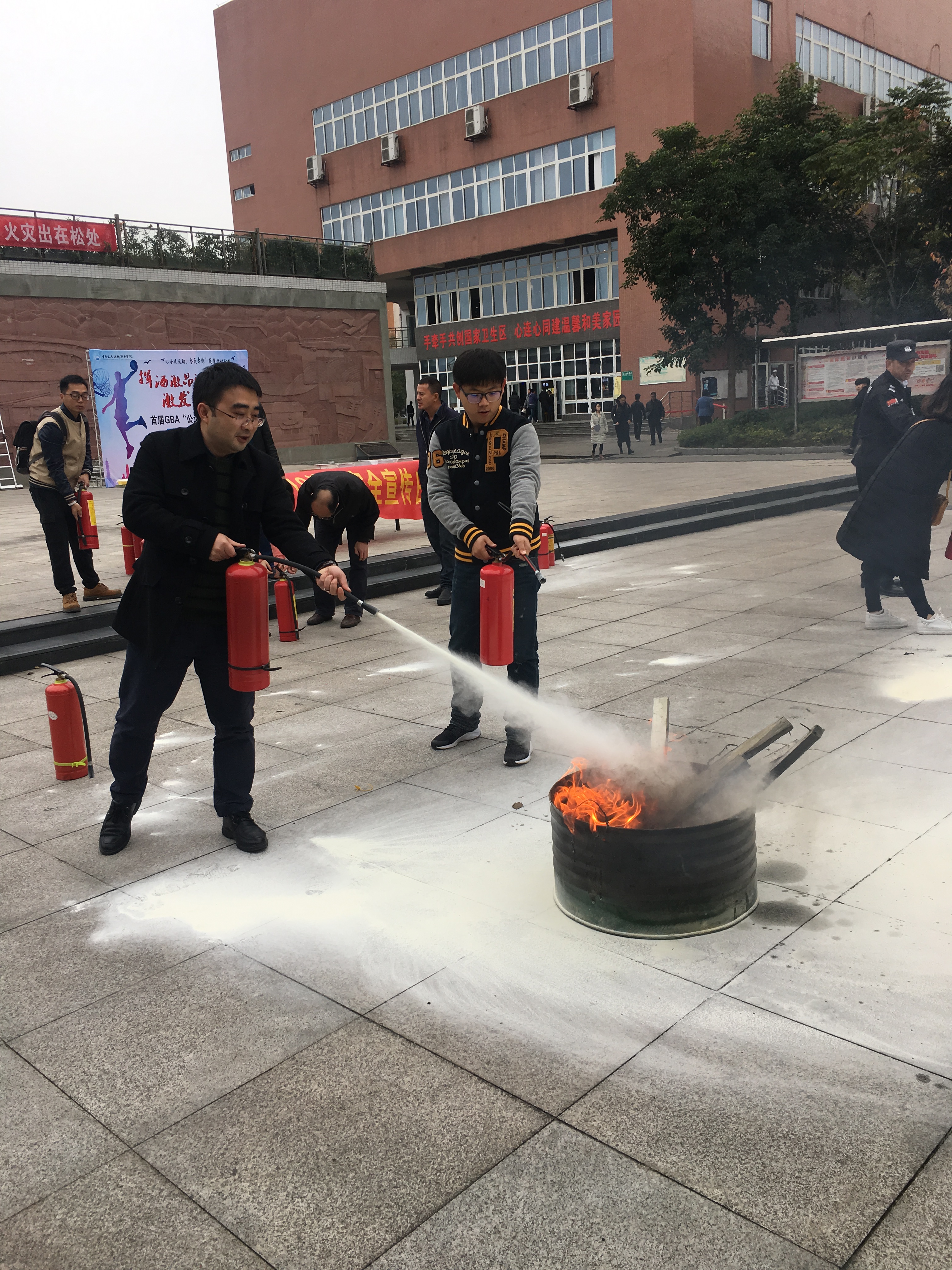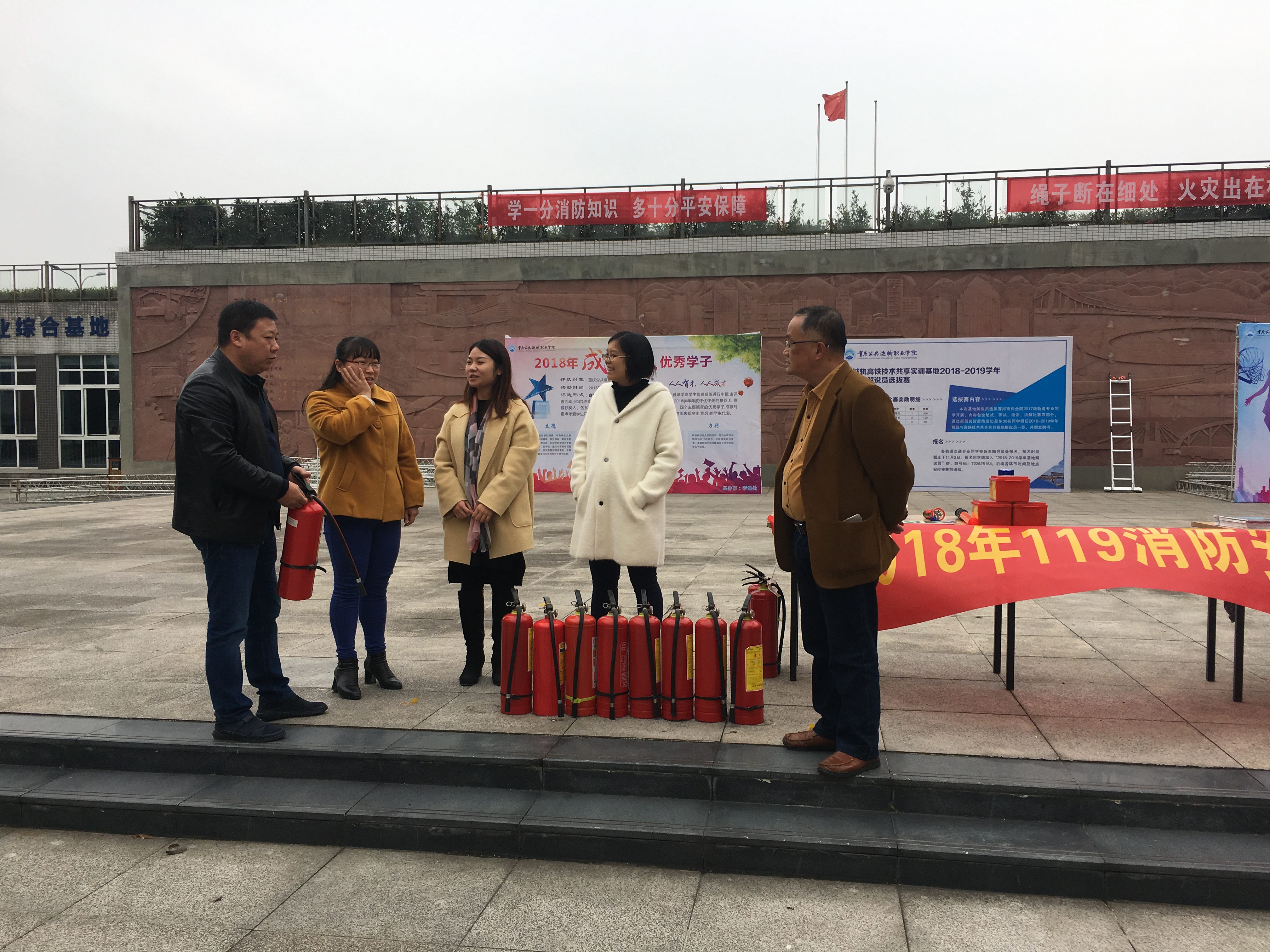 安全保卫处 平安校园建设 通知公告 安全宣传教育 队伍建设 规章制度 资料下载 联系我们 平安校园建设首页 > 安全保卫处 > 平安校园建设 > 学院开展“119”消防安全宣传活动 来源:平安校园建设发布时间:2018-11-16 16:47访问量: 2018年11月9日,是全国第28个“119”消防宣传日,今年活动主题是“全民参与防治火灾”。为大力提升师生消防安全素质,达到“人人受到消防安全教育,人人增强消防安全意识”的目标,11月9日上午,学院在浮雕广场设置了宣传展台,为师生发放消防安全宣传资料,讲解消防疏散引导箱内的物品使用,并现场演示灭火器的使用方法,师生可以现场操作灭火器、防毒面具等。