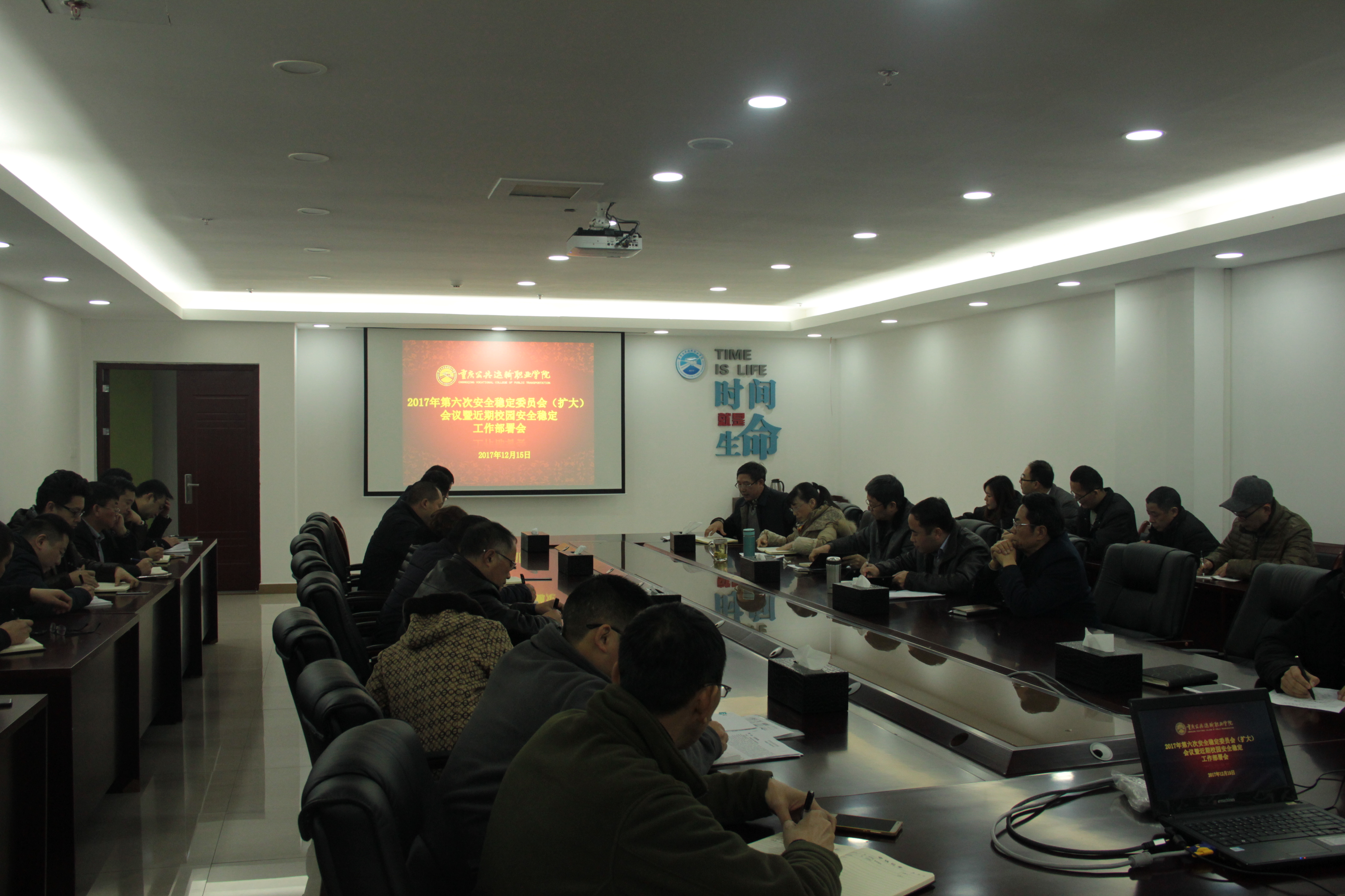 2017年12月15日,学院在图书馆507召开2017年第六次安全稳定委员会(扩大)会议。参加本次会议的有全体领导,各部门党政负责人,大正物业和阳乐公司驻校代表。会议由分管安全领导邱发胜主持。