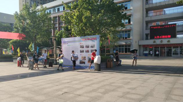 九月的太阳依旧毒辣,太阳似乎在用它独特的方式在考验志愿者们。即便如此运输贸易系的每一个志愿者都坚守在自己的岗位上,有条理的忙碌着,从校门口接待即将成为公运一员的莘莘学子,帮助他们搬行李,带领他们完成报名的每一步骤,校园内洋溢着笑脸充满了感谢声。迎新工作正如火如荼的进行着。
