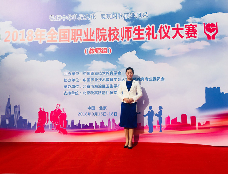 全国职业院校师生礼仪大赛是由中国职业技术教育学会主办的全国性大赛,主题为“弘扬中华礼仪文化,展现时代职业风采”,2018年教师组比赛于2018年6月30号进行初赛选拔,由参赛选手提交仪态视频的方式从全国约140名教师中筛选出70名教师参加决赛 ,2018年9月16-17日在北京举行教师组决赛由海淀区卫生学校承办,教师组决赛由教师仪态展示、教师说课、教师知识竞赛(现场抢答、上机竞赛)组成。
