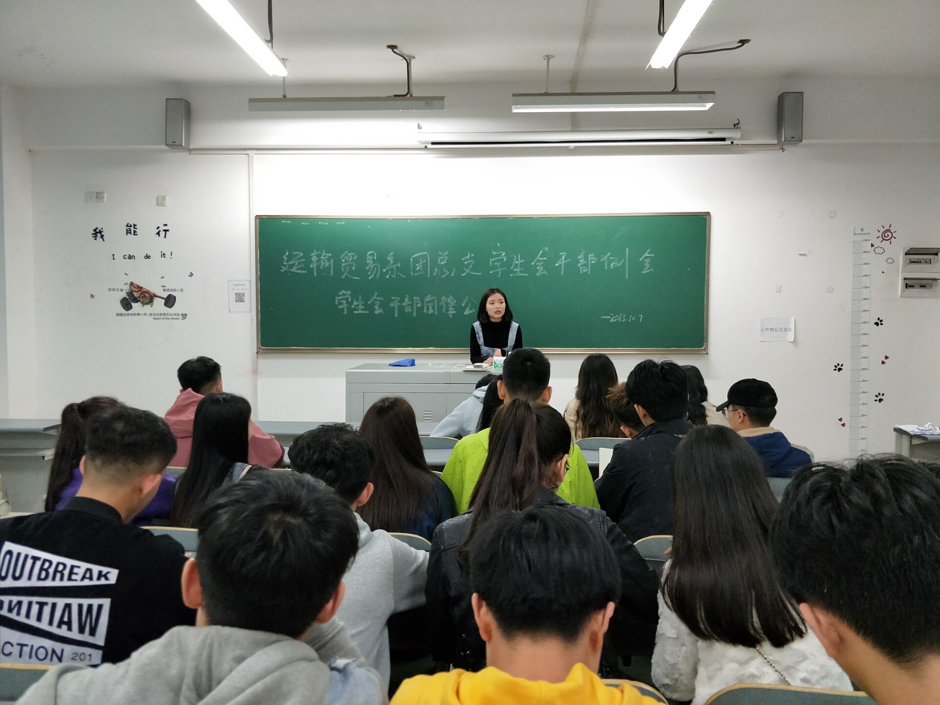 为避免运输贸易系团总支学生会的工作和干部中存在功利化、庸俗化问题且更好地履行工作职责。我系于2018年10月7日20:30在教学楼B101展开关于学生干部自律公约的主题会议。我系团总支书记谢玉琴老师以及团总支学生会主席团和各部门正副部长准时参加了此次会议。