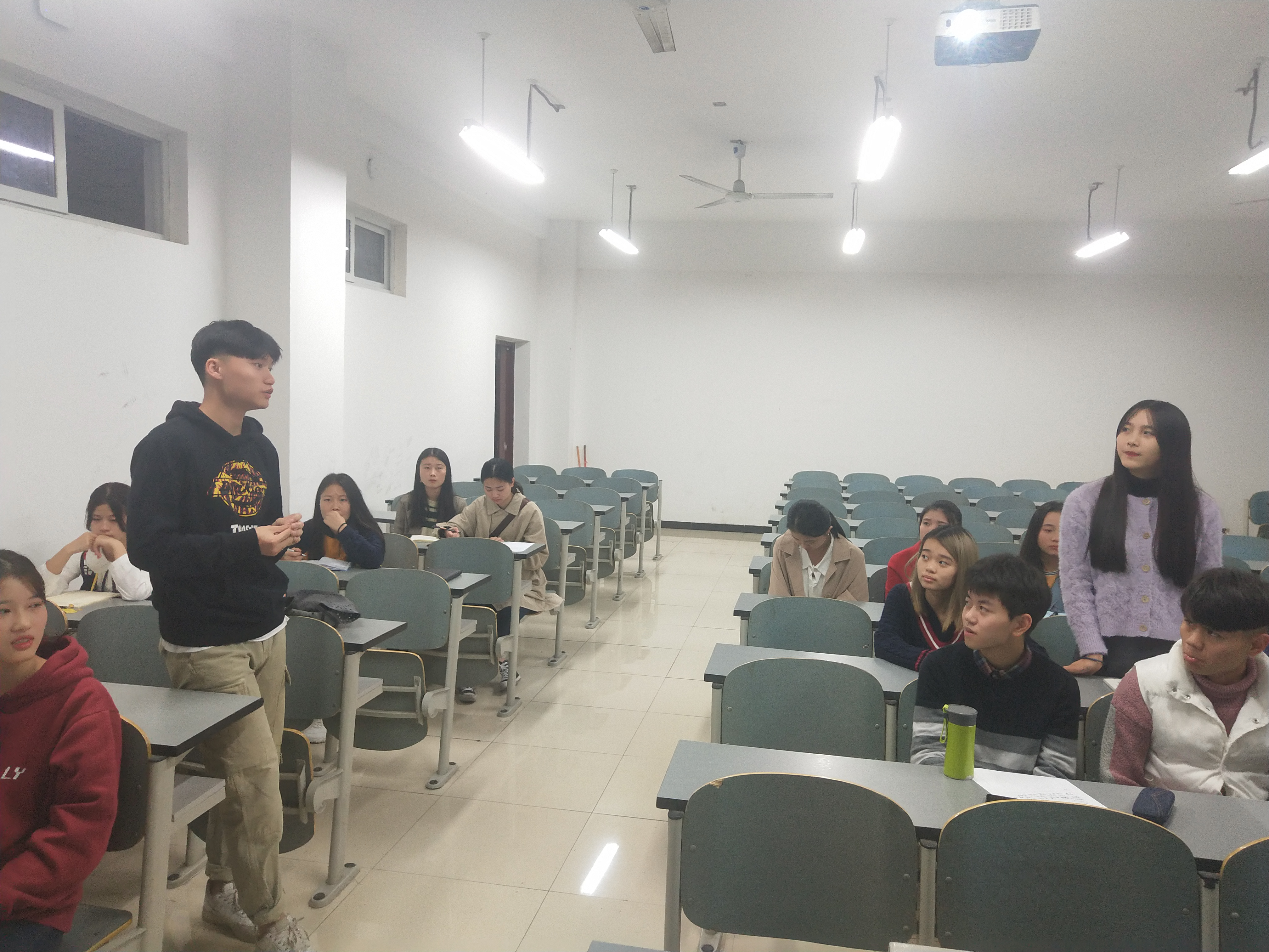 会议中,学生会主席陈颖首先给大家讲解了自我学习和自我管理的重要性,告诉大家学习要有目标,有了目标才会有动力。副主席贺本豪着重讲述了自我管理的方法并强调其重要性。各部门部长以及代表干事们依次表达了自己的看法且相互交流。会议接近尾声时,学生会主席陈颖先后回答同学们关于社会实践与提升学历的相关问题,同时表达了对大一新生们的期望。
