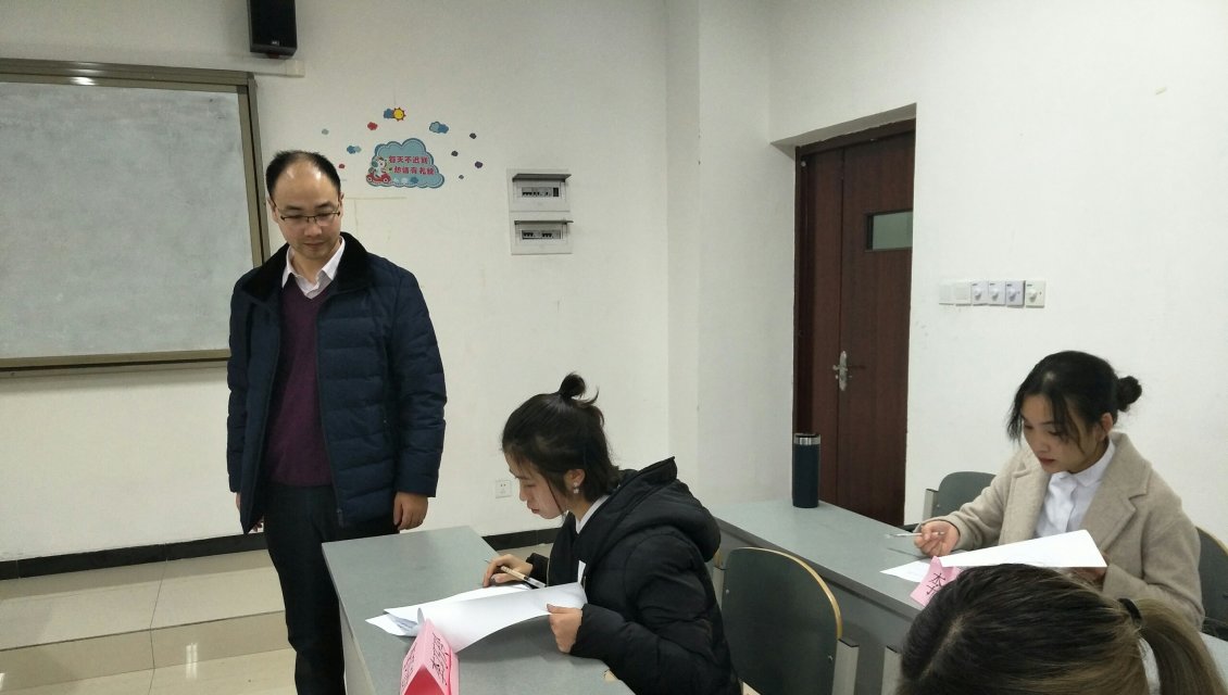 曾书记、古老师认真观察同学们轮答作答 本次竞赛分为两部分,笔试部分同学们沉着应对,认真作答,游刃有余。
