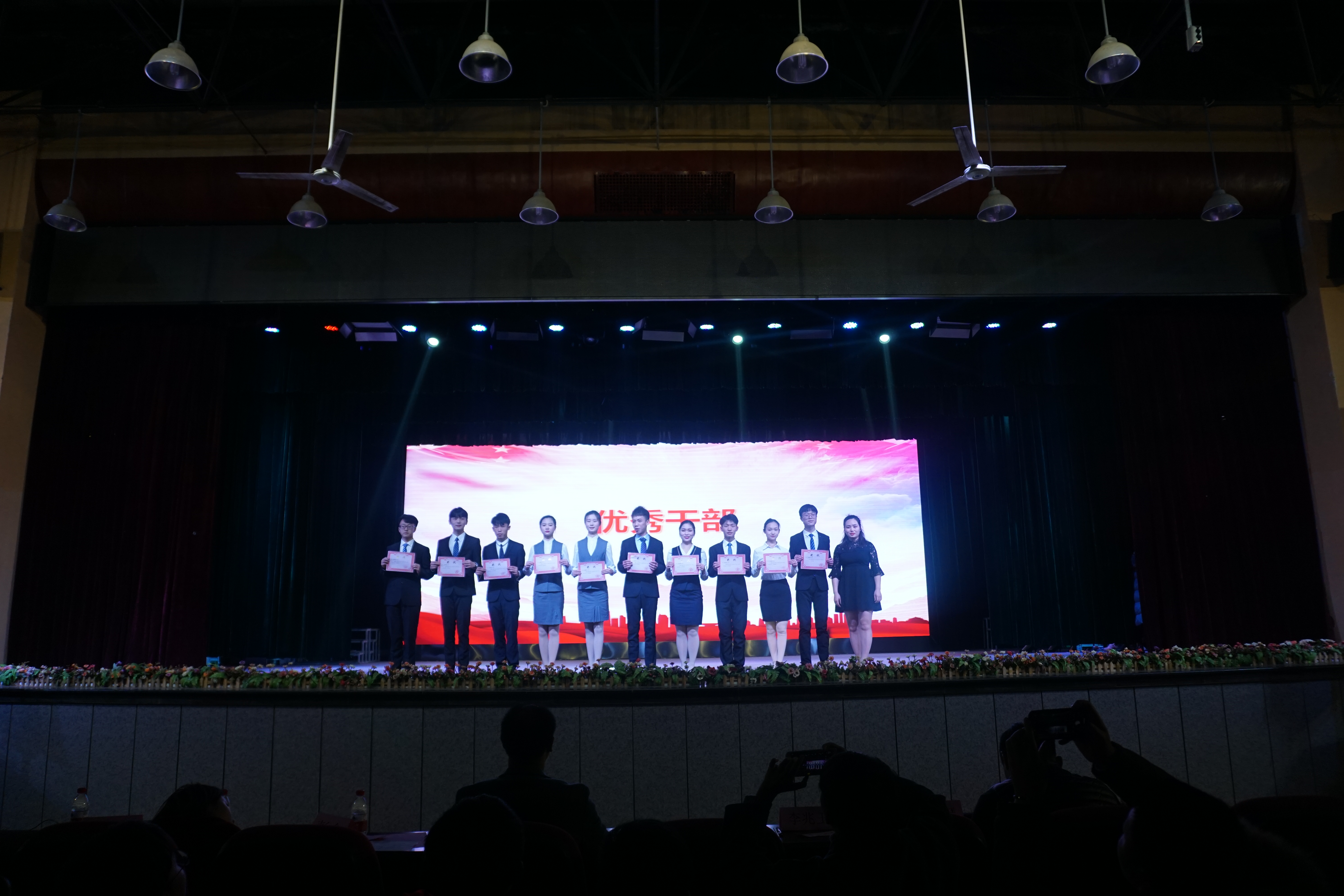 大会过程中,院团委副书记彭余老师、我系党支部书记曾庆东老师与学工办主任古曼筝老师、杨莉老师、刘冰老师先后对十九大知识竞赛、辩论赛最佳辩手、交通安全普法活动等获奖者们以及优秀干部与优秀干事们颁发奖状进行表彰。