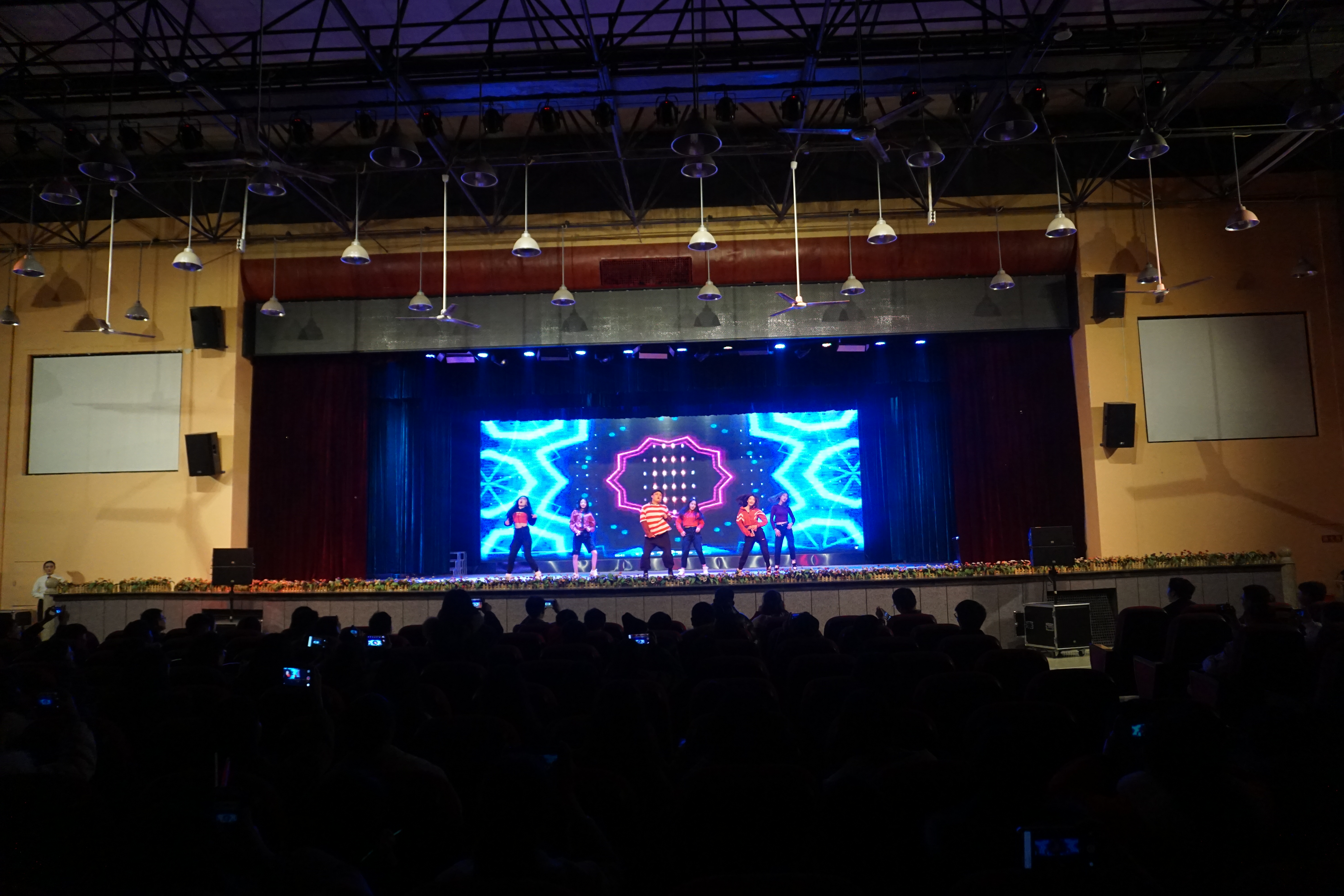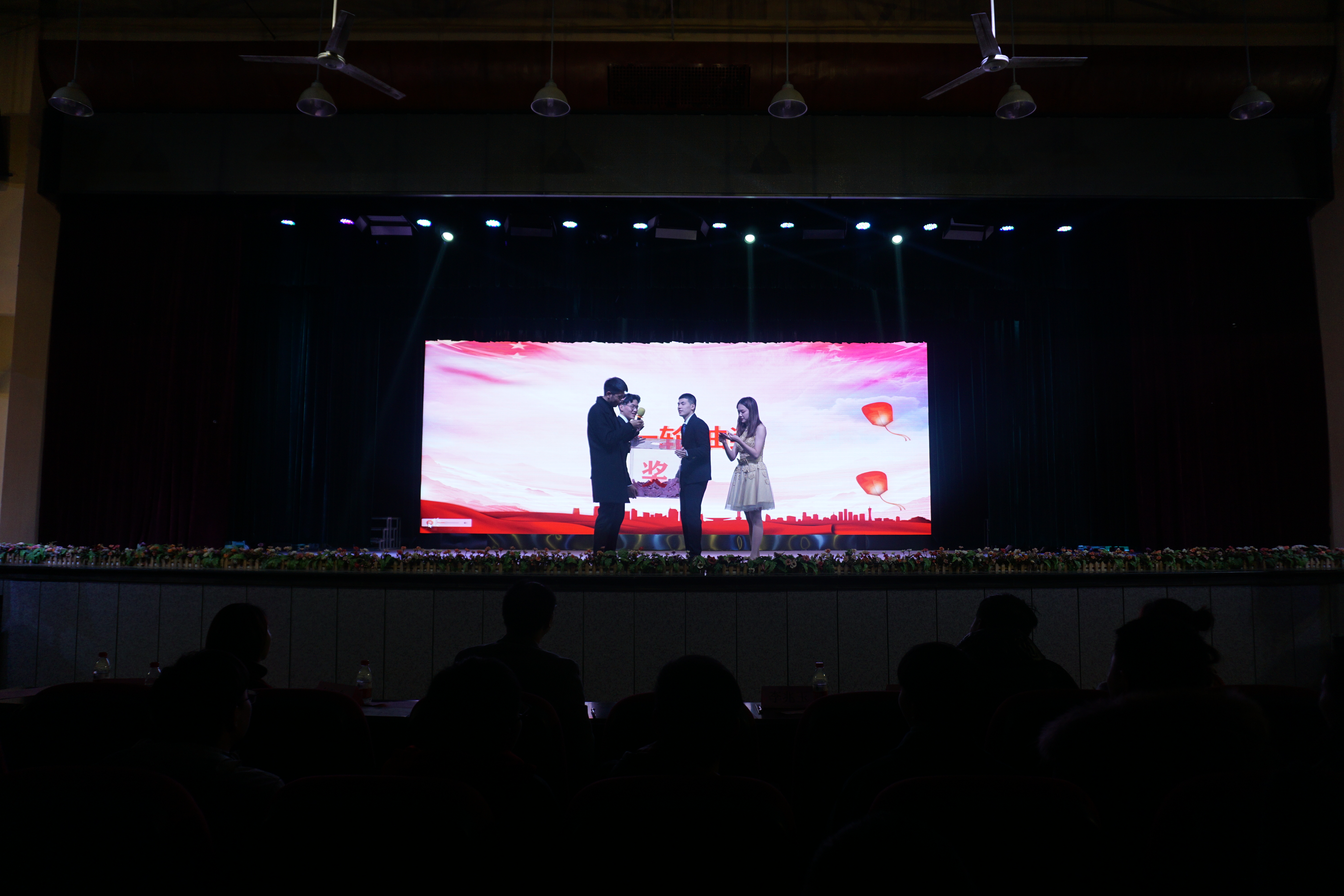 紧接着表演者们一一展示了大会的上篇节目:2018年暑期“三下乡”社会实践成果、《逐梦青春》、《以梦为礼,尽显芳华》等。