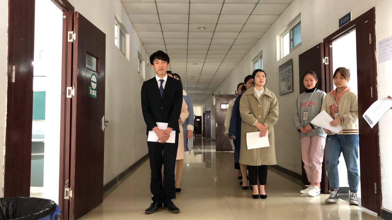 此次,我系共有2017级76名学生报名面试,学生均提前到相应等候室做好了面试准备,接受来自京东公司彭鑫经理及其工作人员的面试。在面试地点门外等待面试的同学们,秩序井然,同学们的脸上或多或少的有着些许的紧张,但更多的是期望与自信。
