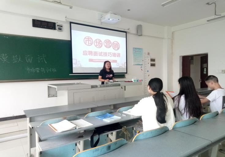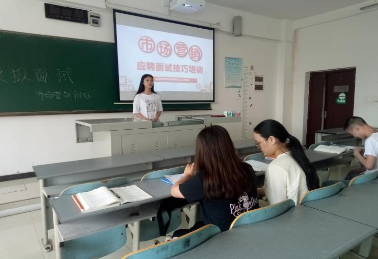 首先由营销班的学习委员带领大家学习面试前的准备,有以下几点:1、面试前应做好相关简历;2、与同伴提前进行模拟面试交流;3、面试中有良好的精神;4、应对面试官的提问,注意自己的言谈举止及服装礼仪,这样会给面试官留下一个好的印象。随后,参与面试的同学从自我介绍、校园经历和获奖情况进行等方面展开。