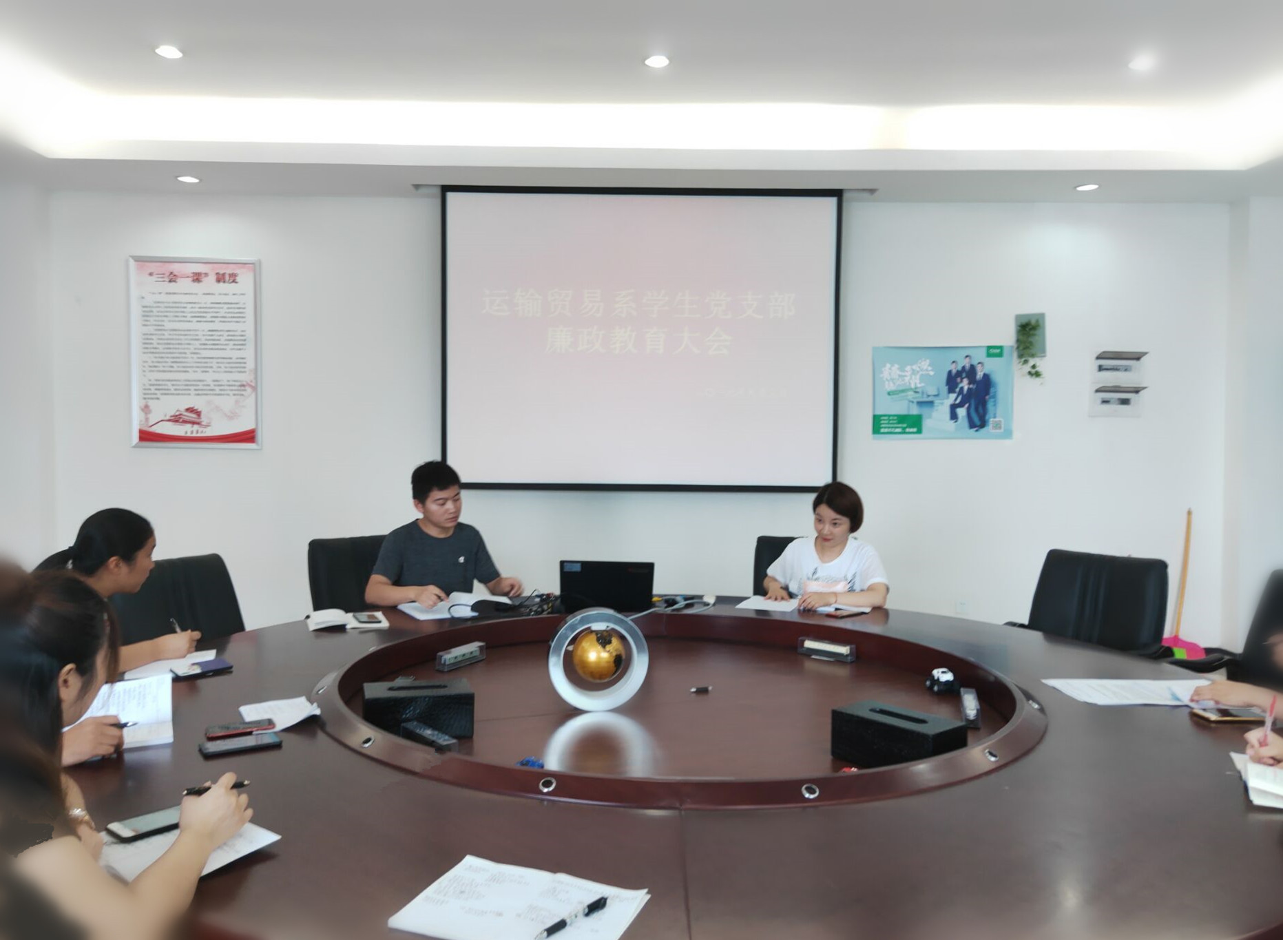 2019年9月3上午11:20由我系学生党支部宣传委员曹宁老师在A508会议室主持召开廉政教育大会,学生党支部全体党员参加本次廉政教育大会。