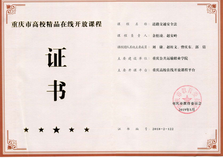 2019年,按照学院十三五建设规划、优质校建设、骨干专业建设任务要求,《道路交通安全法》成功获批重庆市精品在线开放课程,同时新申报市级在线开放课程3门,建设产教融合课程5门,在建精品在线课程17门,结题省级项目2项,新申报教科研项目10项,申报专利4项,主编出版教材5部,在编教材6部。