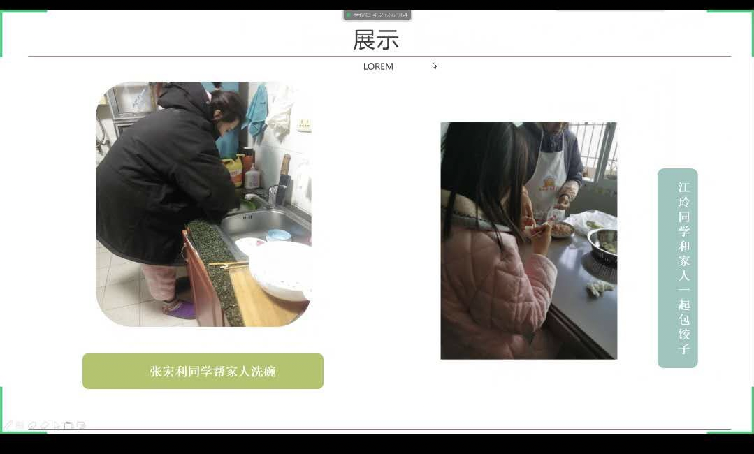 分享最后,辅导员杨莉老师也为分享她在家制作的各种美食,也为此次早读做总结。“今天大家定了一个比较温馨的主题家,这个主题定的很好,我们在这种特殊的防疫阶段运用这样的一个主题来体现我们家庭的温暖和和谐,有的同学在家里边给家人做美食,有的同学在家里边儿帮家长做家务,甚至干农活,都是你们爱的表达。不管是哪一种,这种表达都很棒。但是大家都知道有国才有家我们的国家,现在面临危难,我们应该应当听党指挥严于律己不给国家添乱。因为只有国家的强大,才能保证我们的小家的安宁。所以最后也是希望大家在这个有意义的假期当中,为自己一为家人,为国家尽自己最大的努力做一点点贡献。”有国才有家,现在虽然面临疫情的危难,但是我们不畏惧,也不退缩,做好自己,以积极乐观的态度面对疫情,调节心情,认真学习。愿所有人平安。