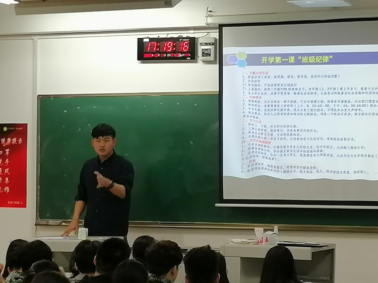 李鑫老师作为新进辅导员切实围绕角色态度转变谈学习态度、工作态度、职场规则,人才成长。既满足了同学们对于大学生活的美好憧憬又勾勒了“育人”的主线。