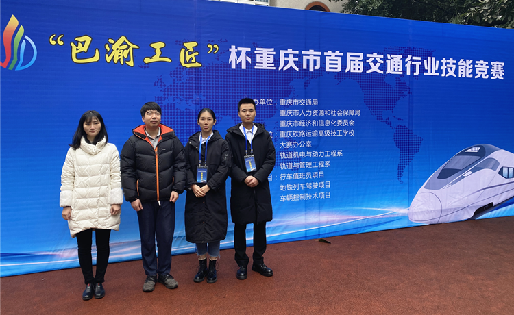 2020年11月25日,“巴渝工匠”杯重庆市首届交通行业轨道设备维护检修(行车值班员)技能大赛于在重庆铁路运输高级技工学校落下帷幕。由运输职院运输贸易学院城市轨道交通运营管理专业1806班古霞,贵阳轨道订单班1班张林林、王钰3名同学组成的代表队经过多轮角逐,最终获得总分第二的好成绩。