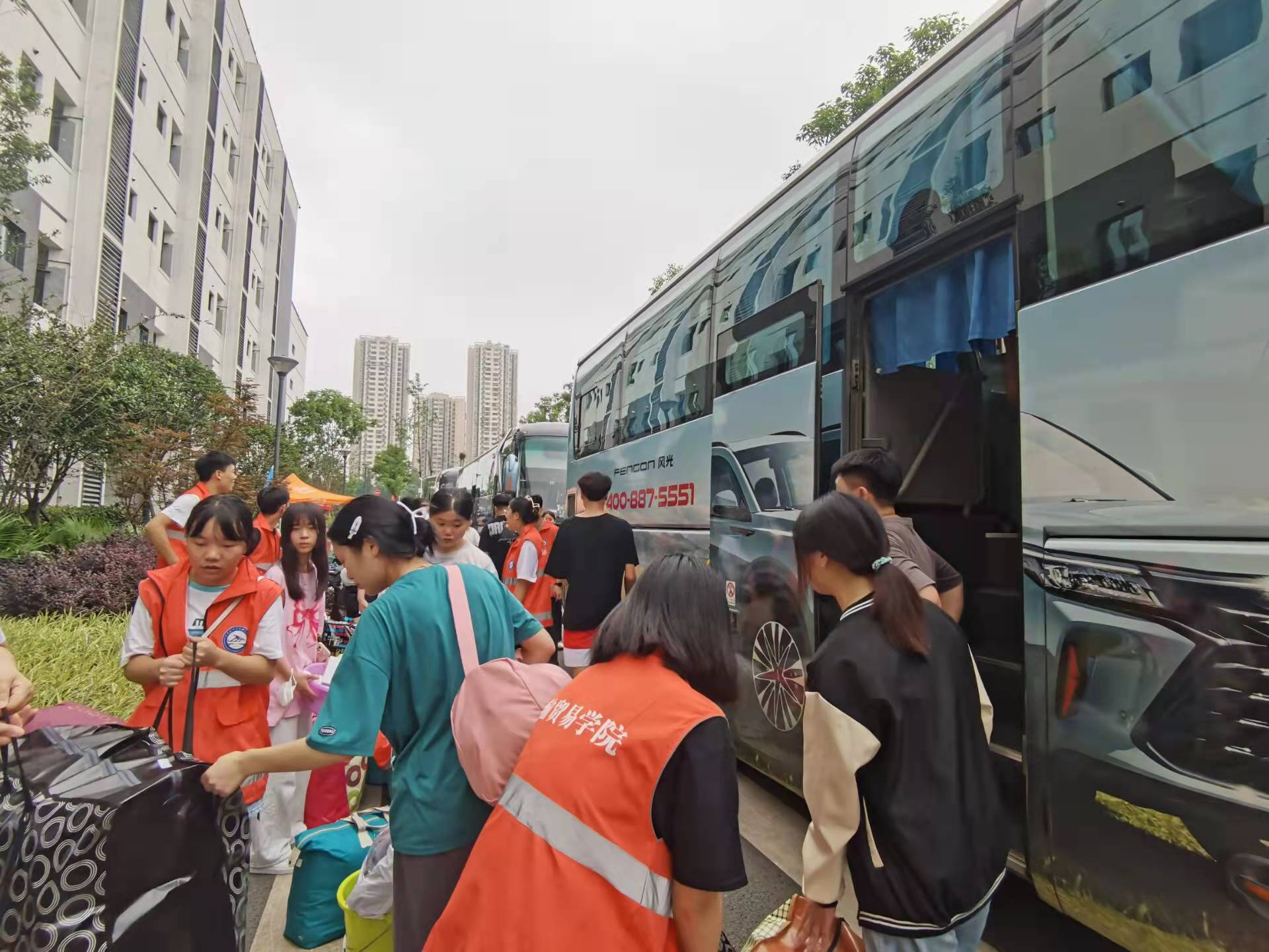 为确保寝室搬迁工作安全顺利开展,老师与志愿者们分工协作,从搬离寝室的卫生打扫、行李存放等都有秩序开展。尽管天气炎热,老师与志愿者们都积极帮助同学们的搬运行李和上下车指引,我院安全、高效的完成校区寝室调整工作。在整个搬迁过程中,大家用实际行动充分展现了互帮互助,团结友爱的精神。