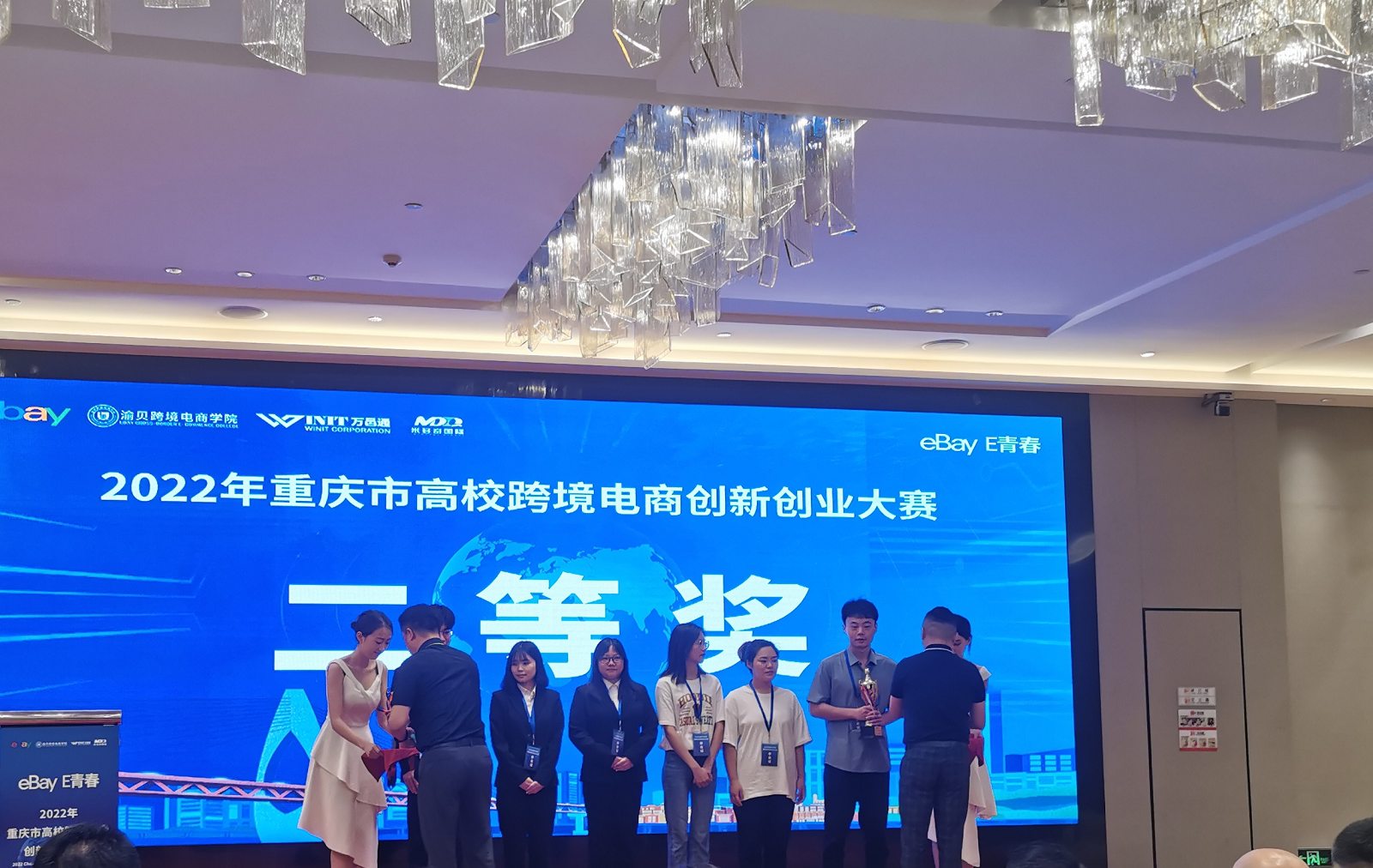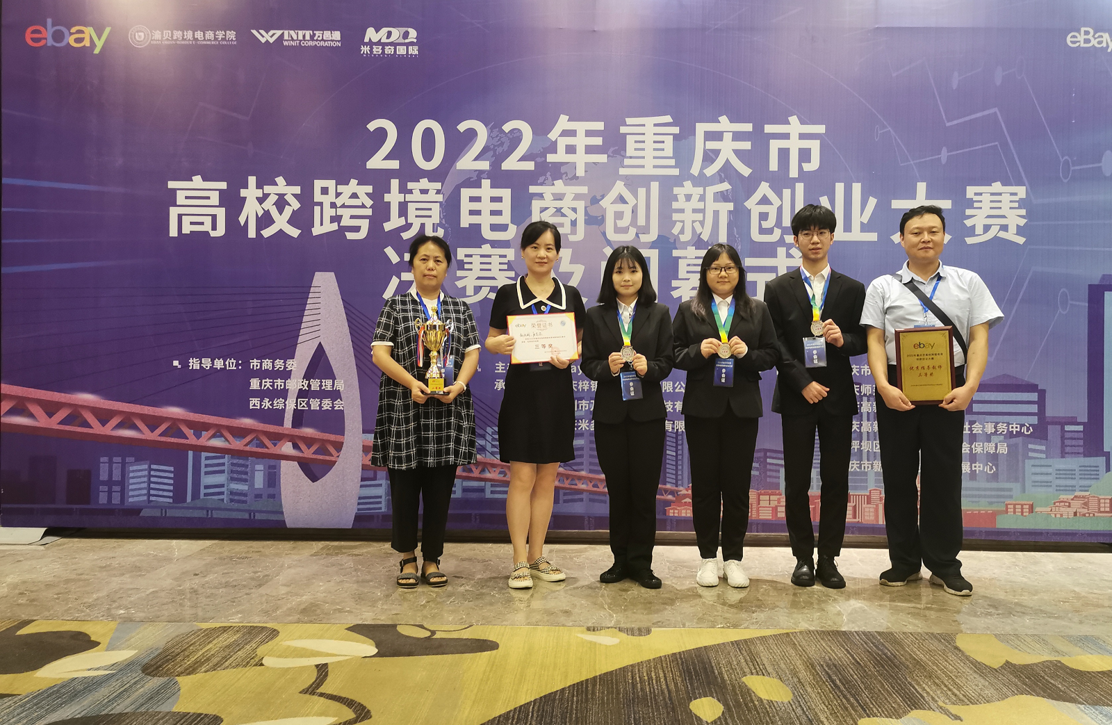 6月29日上午11点,2022年重庆市高校跨境电商创新创业大赛落下帷幕。电子游戏运输贸易学院(数字贸易产业学院)舒红老师领衔设计的“WY全球购”跨境电商e-bay参赛团队,在赵东明老师、唐苏苏老师以及企业老师的指导下,喜获团体二等奖。本次比赛历时三个月,在275支参赛队伍中,“WY全球购”成功晋级30支决赛团队,在竞争激烈的决赛中脱颖而出,获得团体二等奖。