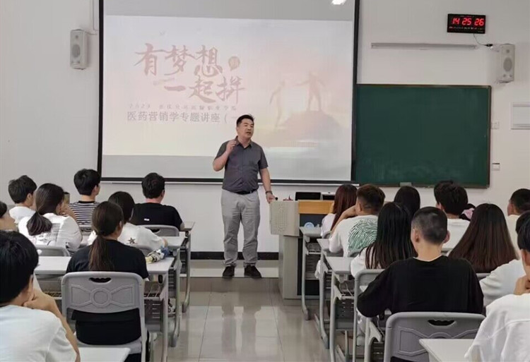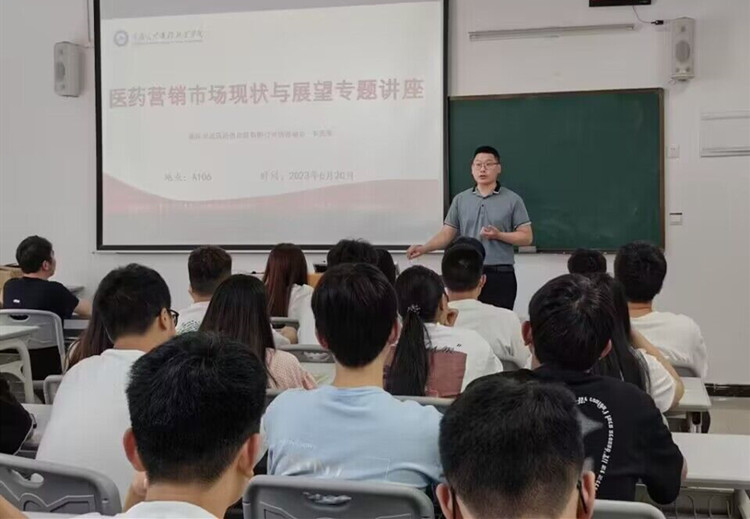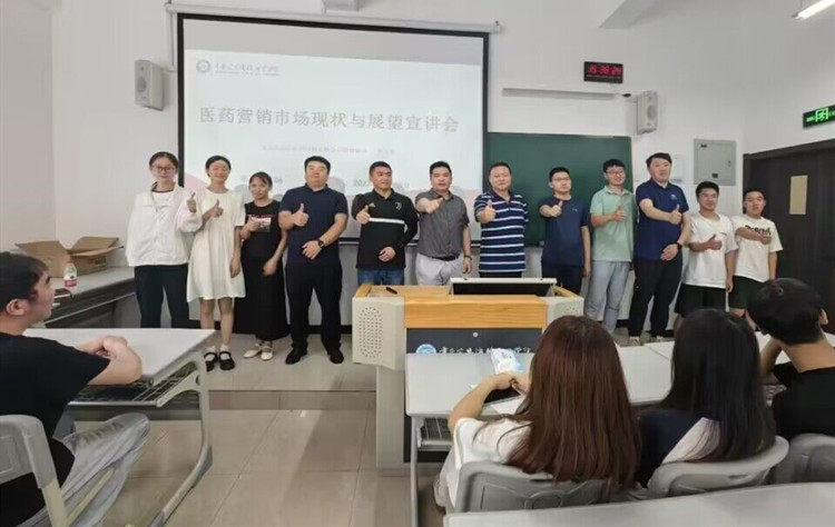 在此次宣讲会上,交运医药李总围绕行业发展、公司情况、销售方法、产品方向等方面进行了详细的介绍,过程中同学们积极与宣讲人互动。宣讲会后,企业相关人员、学院教师与班级同学共同观看了励志短片。