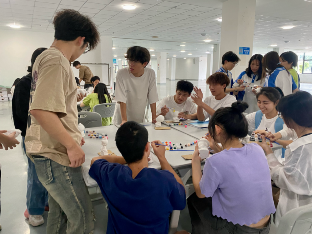 5月25日下午,创意石膏娃娃彩绘DIY活动在新校区活动中心举行,工作人员正装饰着场地,过往的行人就已经围上来了。大家一起围坐在一起,对自己的娃娃进行天马行空的创意。