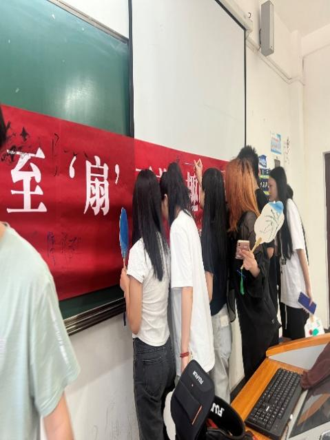 活动期间,同学们充分发挥想象力和创造力,亲手制作出各具特色的手工扇子、风筝。这些扇子虽然有固定的形状,但是同学们用创意将扇面改造得各具特色,有的同学用细腻的笔触绘制出美丽的风景,有的同学将自己向往的生活描绘出来了,点缀出别具一格的艺术效果。更令人欣喜的是,同学们还在扇面上写下了自己喜欢的句子或是对生活感悟,让每一把扇子都充满了独特的情感色彩。这些作品不仅展现了同学们的才华和创意,更体现了他们对美的追求和对生活的热爱。