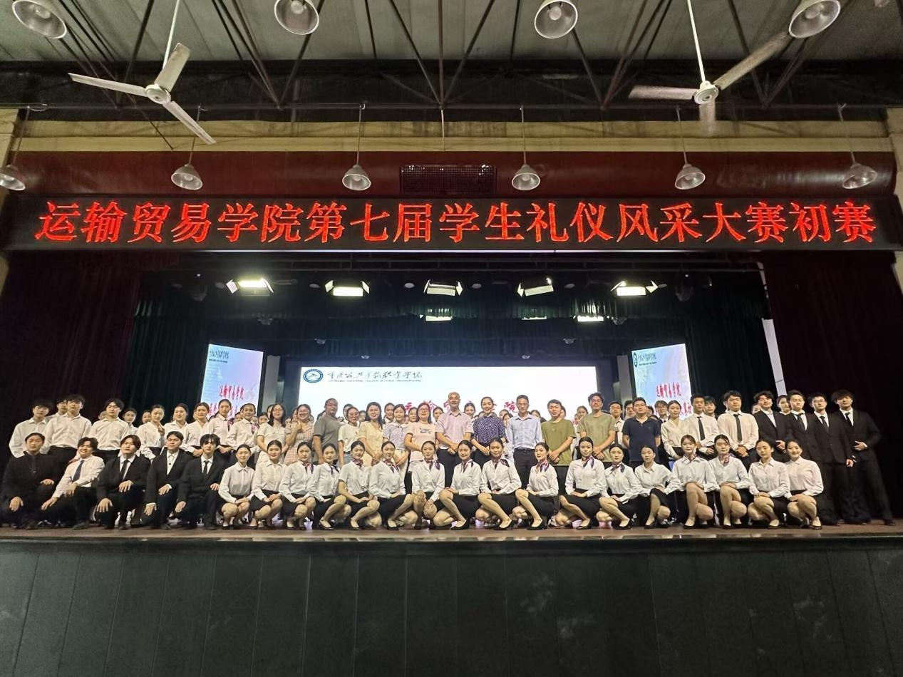华夏之河,礼仪贯中。为进一步提升学子形象气质与礼仪修养,丰富校园文化生活,弘扬中国优秀传统礼仪文化并展现公运交通特色礼仪文化,运输贸易学院于 2024 年 5 月 27 日下午 14:00 在主校区学术报告厅举行第七届学生礼仪风采大赛初赛。运输贸易学院党总支书记曾庆东、综合办公室主任梁晓芳、学工办主任周静担任大赛评委,全体辅导员老师及 200 余名学生代表共同观看比赛。