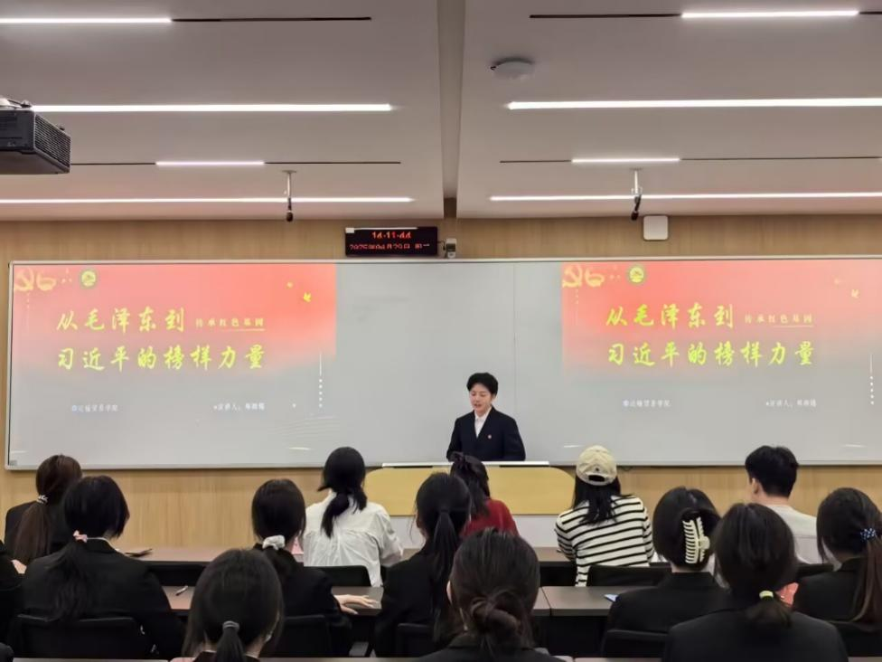 宣讲会上,运输贸易学院第八期青年马克思主义者培养工程培训班学员潘世娟、郑颖锡、杨皓岚分别从政策解读、榜样引领、自律修身三个方面展开阐述,让同学们对青年发展政策有了深入的了解,从毛泽东、习近平的成长故事中汲取了强大的精神力量,深刻认识到自律修身的重要意义及青年学子的时代担当。