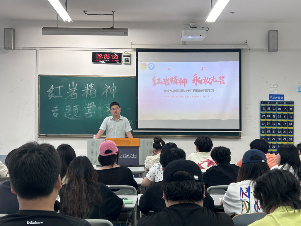 为进一步强化党建引领团建工作效能,充分发挥党组织对团组织的带动作用,引领广大青年学子深刻感悟红色精神的深刻内涵,勇毅担当时代赋予的使命,2025年5月14日下午,运输贸易学院团总支在主校区B305教室开展“红岩精神”专题学习会。会议以党史教育为坚实基石,由运输贸易学院学生党支部书记曹宁老师担任主讲人,旨在激励青年学子以革命先辈为光辉榜样,在实现中华民族伟大复兴的征程中,贡献出属于自己的青春力量。
