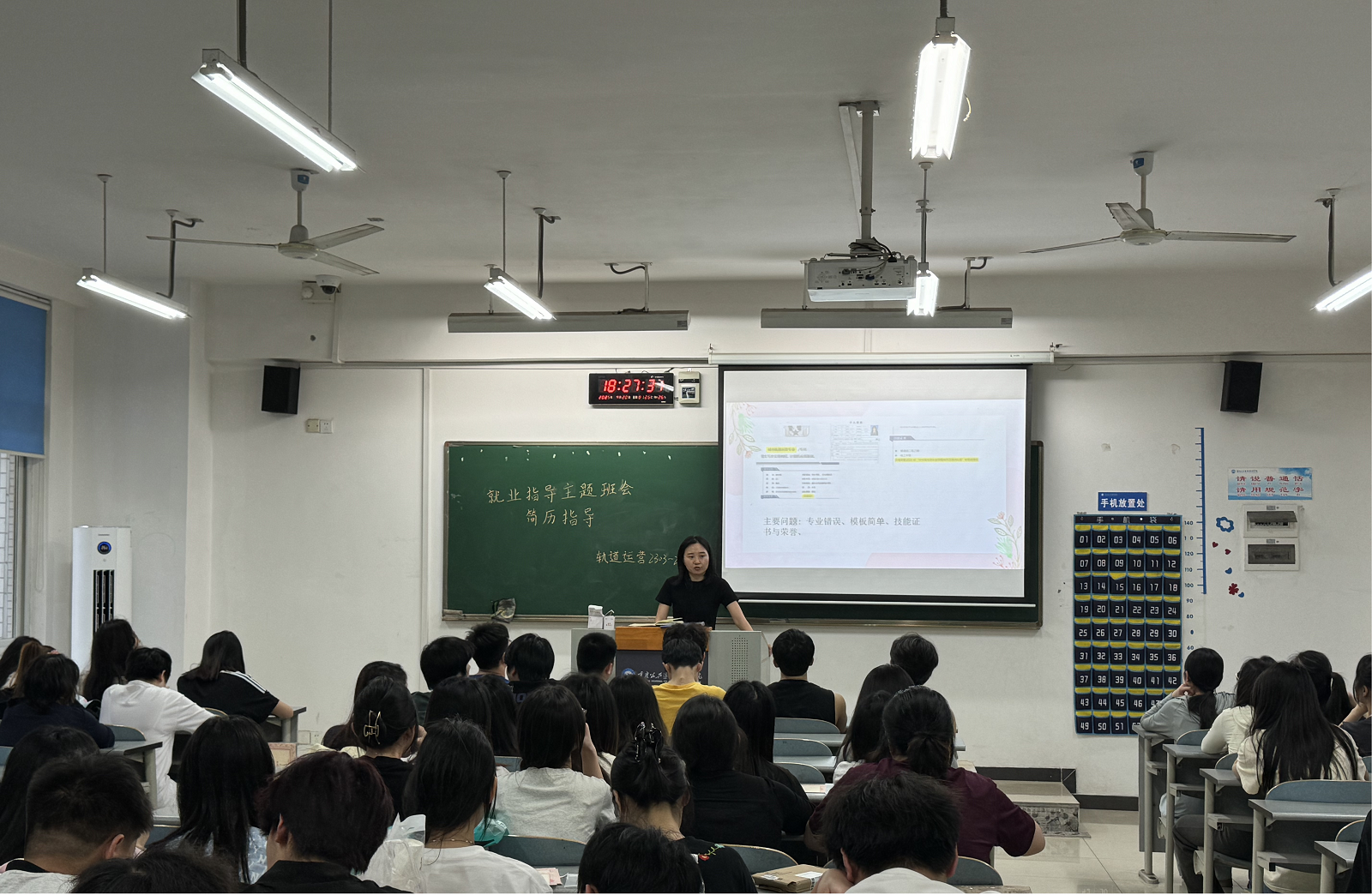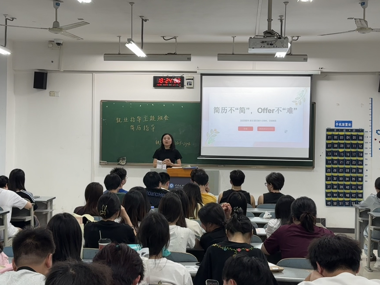 简历是求职的敲门砖,为提升学生就业竞争力,帮助2026届毕业生掌握简历制作技巧,辅导员陈敏老师于2025年4月8日举办了“简历不简,‘offer’不难”的主题班会。