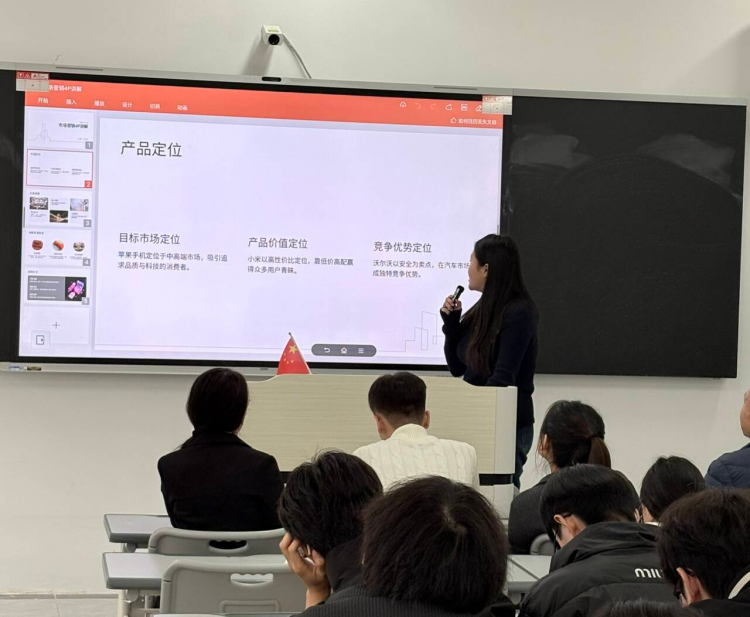 下午,决赛在新校区C304教室拉开帷幕。经过初赛选拔的优秀选手围绕“一个知识点、一款商品、一个案例”展开限时5分钟的精彩展示。参赛作品选题多元:既有对“Jellycat营销策略”“支付宝集五福”等前沿热点的深度解析,也有对“香飘飘奶茶”“送礼就送脑白金”等经典案例的创新解读,更有选手化身“产品经理”,现场推销华为新款智能手机、可比克薯片等,配合精心剪辑的视频与数据图表,将营销理论与实战技巧巧妙融合。未来,市场映像专业将持续深化“以赛促教、以赛促学”机制,为行业输送更多兼具创新思维与实践能力的复合型营销人才。