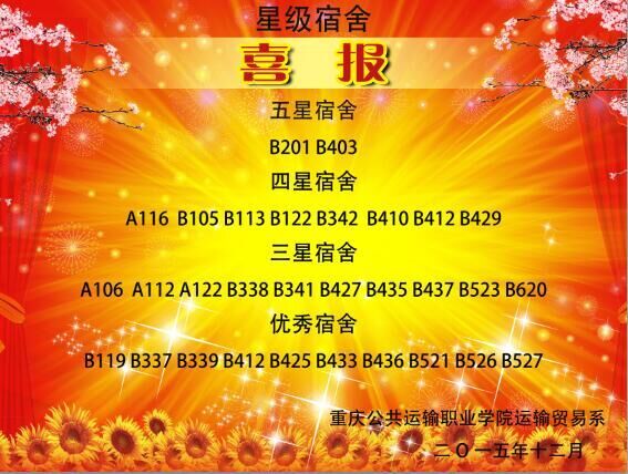 运输贸易学院 学院概况 工作动态 专业设置 教学科研 党建工作 学生工作 就业创业 实训建设 供应链学院 下载专区 工作动态首页 > 运输贸易学院 > 工作动态 > 星级寝室评选活动圆满结束 来源:工作动态发布时间:2015-12-08 16:51访问量: 2015年12月5日学院开展了每一年度的星级寝室创建活动,由学生会副主席涂光辉和学生代表组成的复评小组对本次星级寝室的宿舍装订了星级寝室门牌。 评选小组通过一个小时的装订,深深感受到寝室文化越来越丰富,同学们的素质较以前有了很大提升。参评过程中同学们所展现的积极向上的精神状态以及和谐温馨的寝室气氛让人深受感动。 通过这次活动,改善了我院学生寝室的学习生活环境,对于创建整洁文明的寝室环境,提升电子游戏寝室管理又上了一个新台阶阶。 运输贸易系新闻部 2015年12月5日
