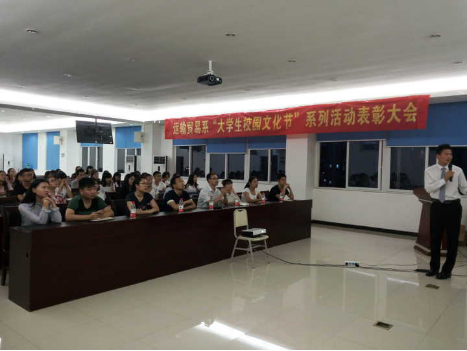 2016年6月26日晚,运输贸易系学生工作总结暨表彰大会在A403隆重召开。出席本次大会的有运输贸易系党支部书记曾庆东、团总支副书记冉彤老师,学工办刘璐老师和钟馨怡老师。