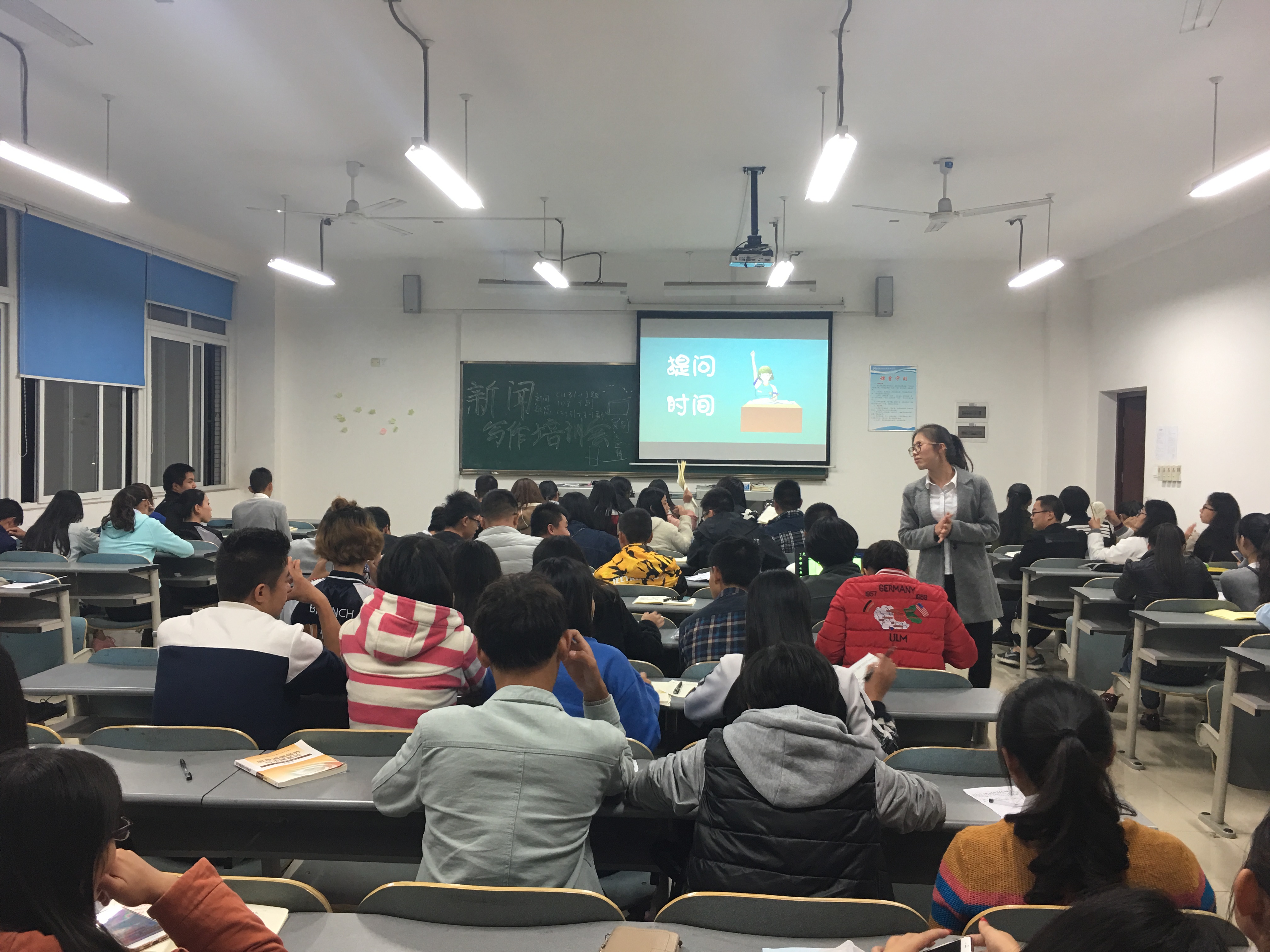 为了各班宣传委员、新闻部各干事可以更深层次地了解新闻稿的撰写方法,更加出彩地完成他们的工作,辅导员杜康于2016年11月初,在教学楼D507召开了新闻写作培训会。参加这次培训会的共有86名同学,其中包括大一大二的宣传委员,也有一些其他班委自愿前来旁听,同时大一的三位辅导员周静、陈晓利、古松老师也抽出宝贵时间莅临本次培训会议,整个现场座无虚席。