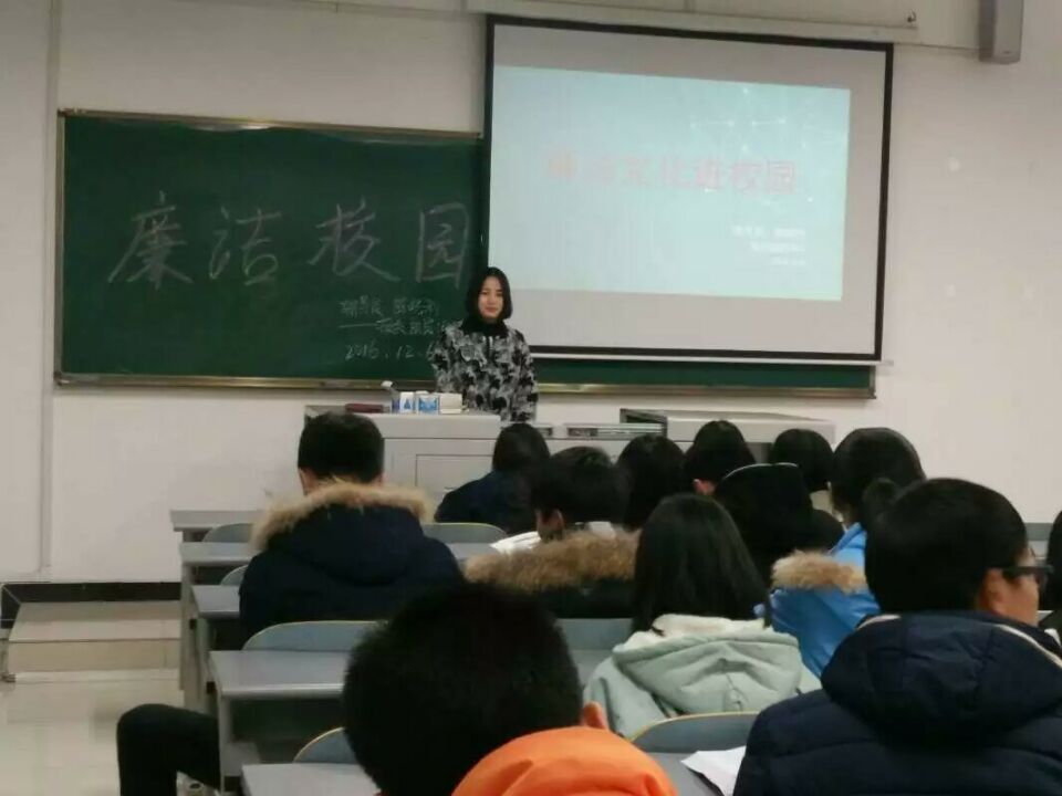 为强化同学们节俭自律责任意识,培养学生敬廉崇洁、不奢侈浪费、不攀比消费的道德情操,做到以廉为美、以廉为乐、以廉为荣,营造崇尚廉洁的校园文化氛围,创建和谐的育人环境。报关国贸1601班全体同学于2016年12月6日晚在教学楼B405开展了“廉洁文化进校园”的宣传活动。