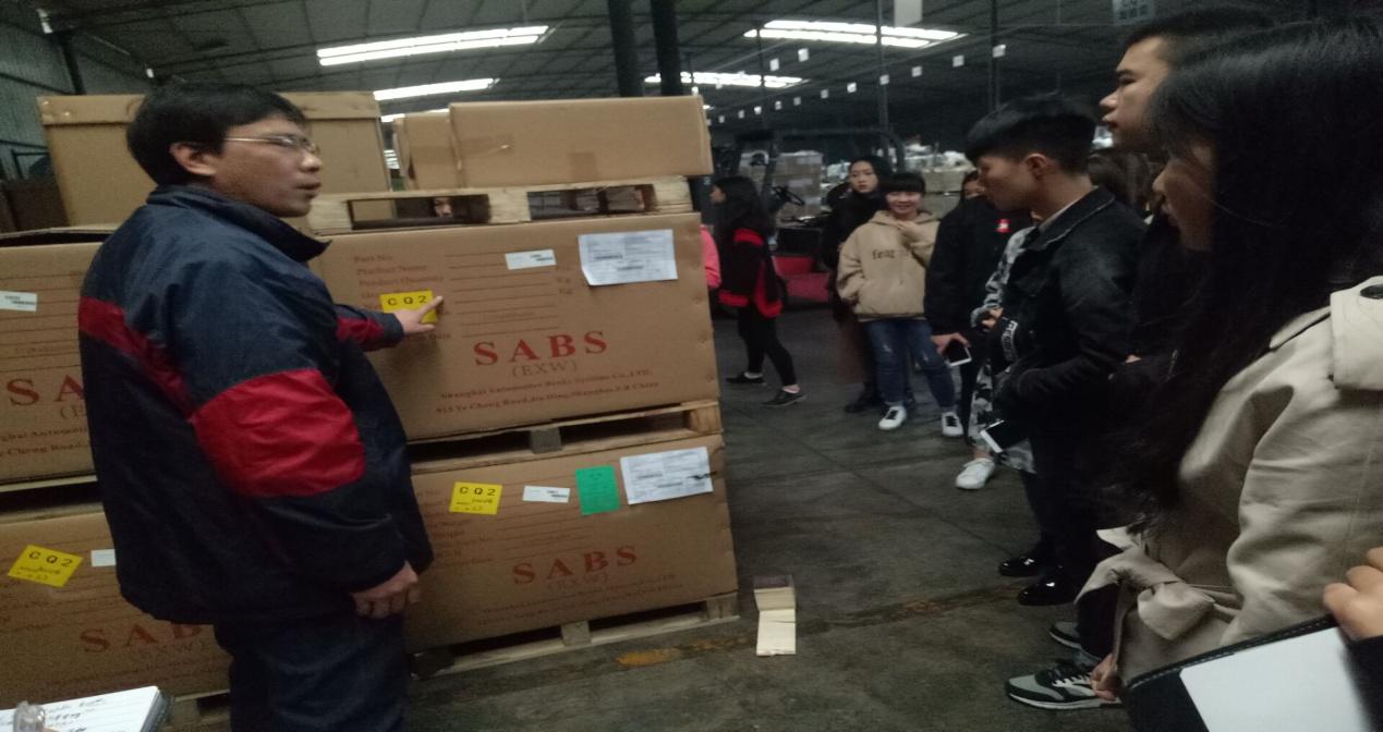 随后,公司工作人员带领同学们来到仓储部,并详细讲解有关货物从进库到出库的相关流程和注意事项。同时,向同学们讲解了仓库货物的分类管理。同学们对其大致了解后,向工作人员询问了关于货单和货物流向等问题,并得到了工作人员的详细解答。