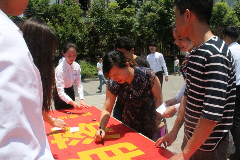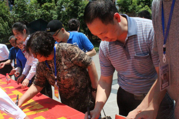 中国自古被称为礼仪之邦,礼仪对于我们来说,更多的是能体现出一个人的教养和品位礼仪是塑造自身形象的重要手段, 2017年6月7日中午,运输贸易系在浮雕广场开展了礼仪签名活动,重庆公共运输职业学党委书记彭超、学院常务副院长李海峰、党群处处长陈怡、学院办公室主任王欣、运输贸易党支部书记曾庆东以及其他领导出席此次礼仪签名活动。