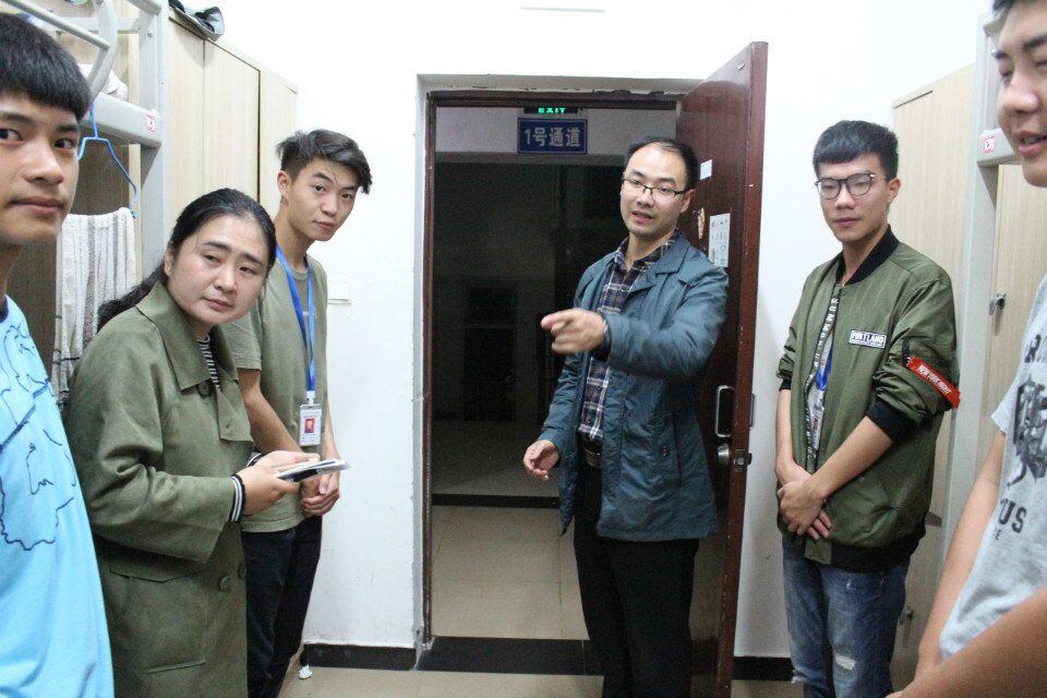 晚上10点,运输贸易系学生会全体干部于A栋宿舍楼下集合,并在曾庆东书记和谢玉琴老师以及全体辅导员的带领下,进行了大一新生正式行课以来第一次大规模查寝。
