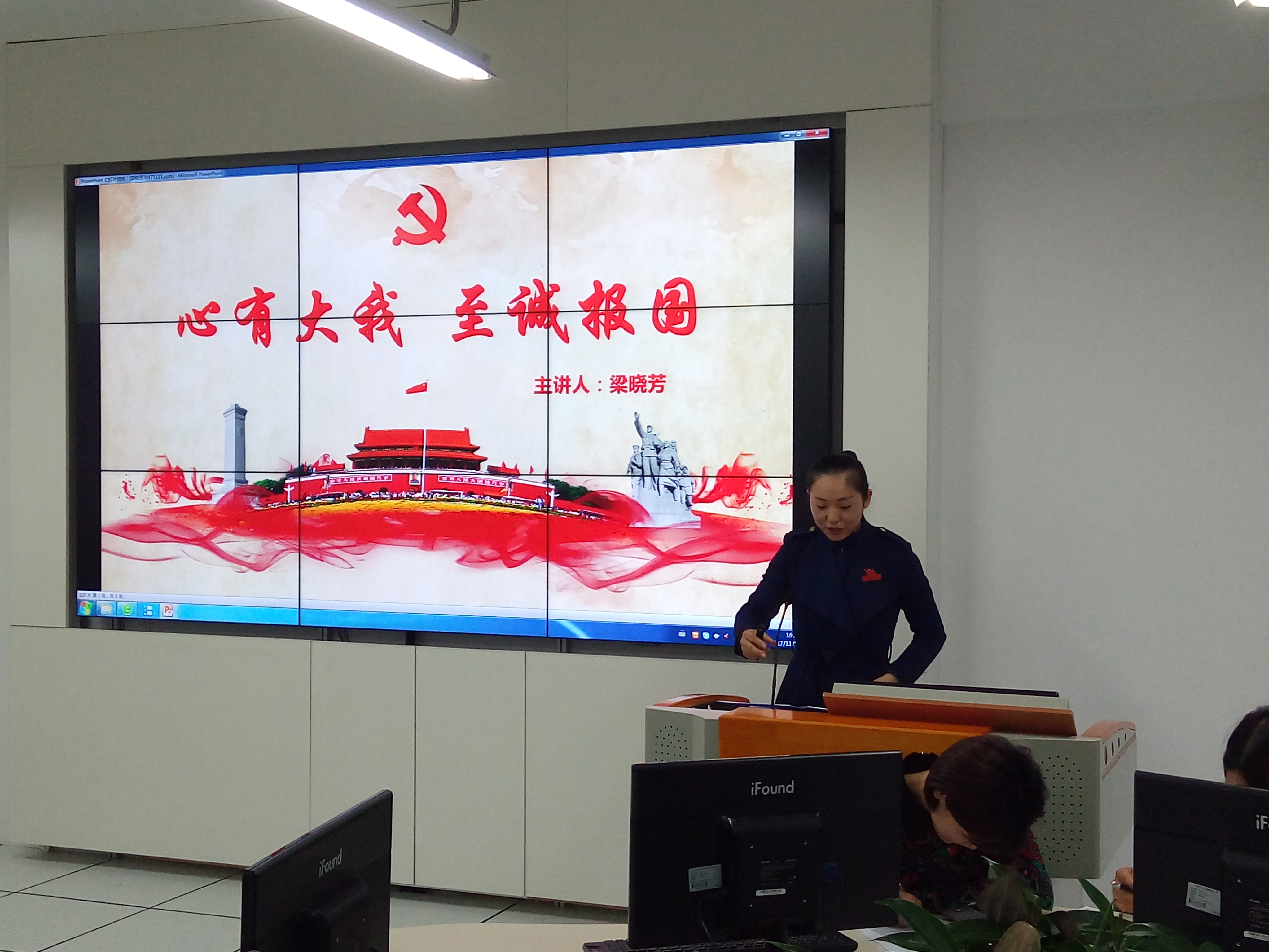 最后一位上场的梁晓芳老师分享了“心有大我,至诚报国”的微党课,她用邓稼先、黄大年同志为榜样,强调我们党员教师应该学习他们心有大我、至诚报国的爱国情怀,学习他们教书育人、敢为人先的敬业精神,学习他们淡泊名利、甘于奉献的高尚情操,把爱国之情、报国之志融入祖国改革发展的伟大事业之中、融入人民教育的伟大奋斗之中。她用气势恢宏的声音,磅礴的气质演讲,征服了观众。