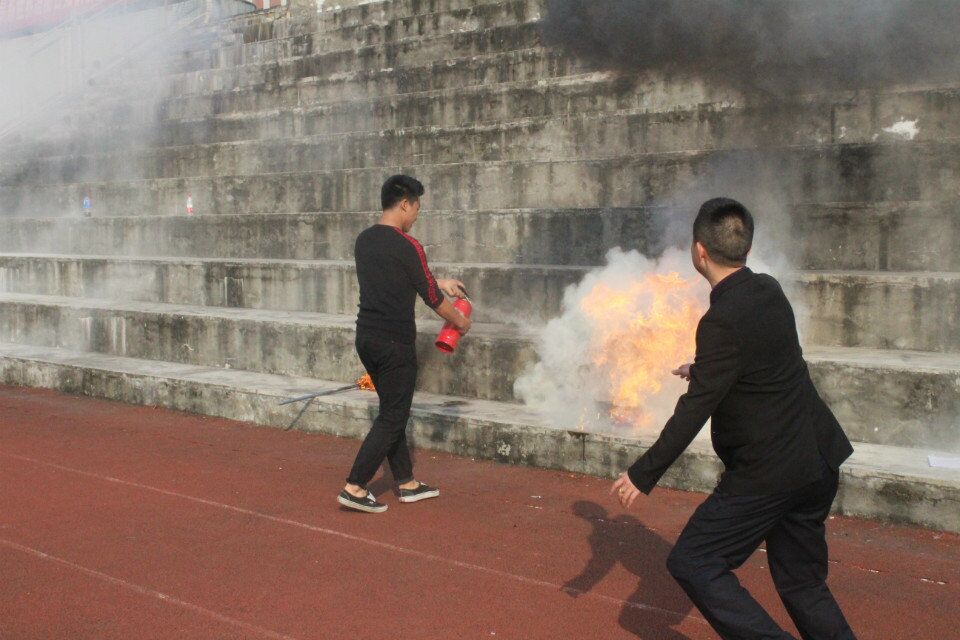 消防安全实践赛暨消防安全知识大赛在曾庆东老师的宣布下正式开始。参赛小组每组五人,一轮四组,共三轮,用时最短且操作无误为胜。杨教官以实例向在场同学讲解灭火器材的使用,强调正确距离为两米,时刻注意火向。在统计小组赛的成绩期间,邀请了各班同学进行灭火演习。活动最后,曾庆东老师宣布参赛小组比赛成绩并嘱咐在场师生,构筑消防安全“防火墙”,做到警钟长鸣,预防为主,防消结合。