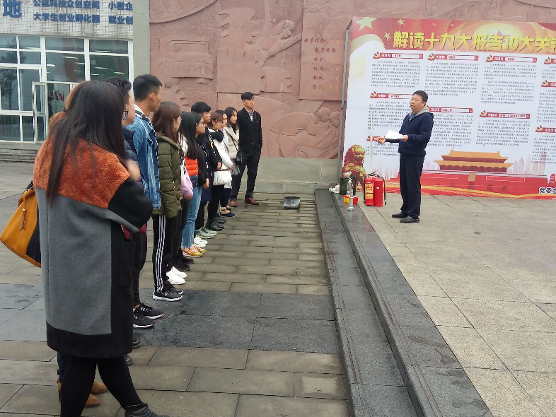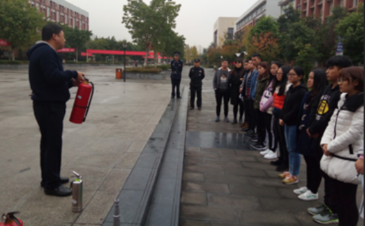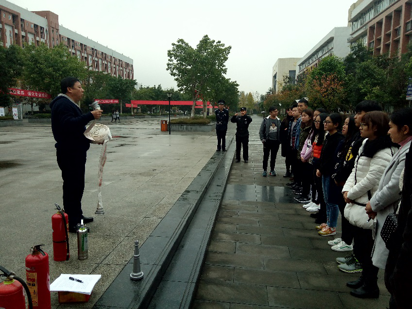 为加强学院消防安全工作,顺利开展今冬明春火灾防控工作,结合“11.9”消防日活动,2017年11月22日下午5点,在学院浮雕广场,运输贸易系与学院安保处联合举行了第一次志愿者消防培训活动。