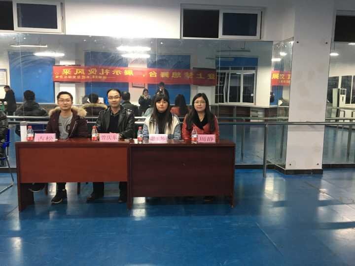 12月20日19:00,在教学楼D106形体训练室,举办“文明礼仪秀”决赛,共有十支队伍进入最终比拼。担任此次决赛评委的是运输贸易系党支部副书记曾庆东老师,运输贸易系团总支书记谢玉琴老师,评选组周静老师和古松老师。