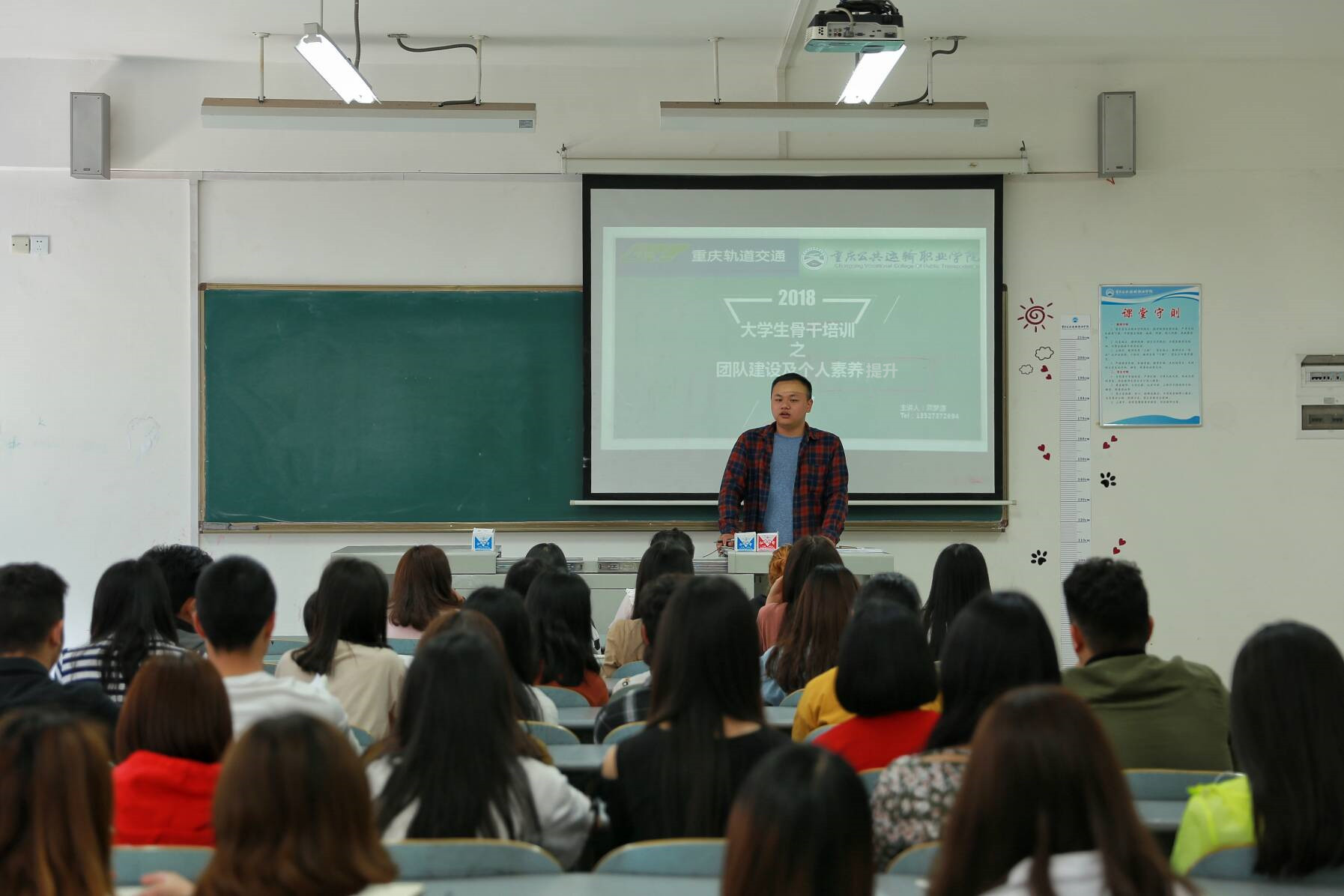—17级交通运营、报关、市场营销班干培训会顺利召开为加强班委队伍建设,提升班级管理服务水平,全力打造一支品学兼优的大学生骨干队伍,推进电子游戏“人人成才,人人有才”的教学理念,4月18日下午13:00,交通运营管理专业1701-1703班、报关与国际货运1701班、市场营销1701班以交开投集团系统团干部培训为契机,积极响应常务副院长李海峰教授的号召,邀请到重庆轨道交通运营三公司通号维保部团支部团干龚梦源为60余名学生干部进行培训。