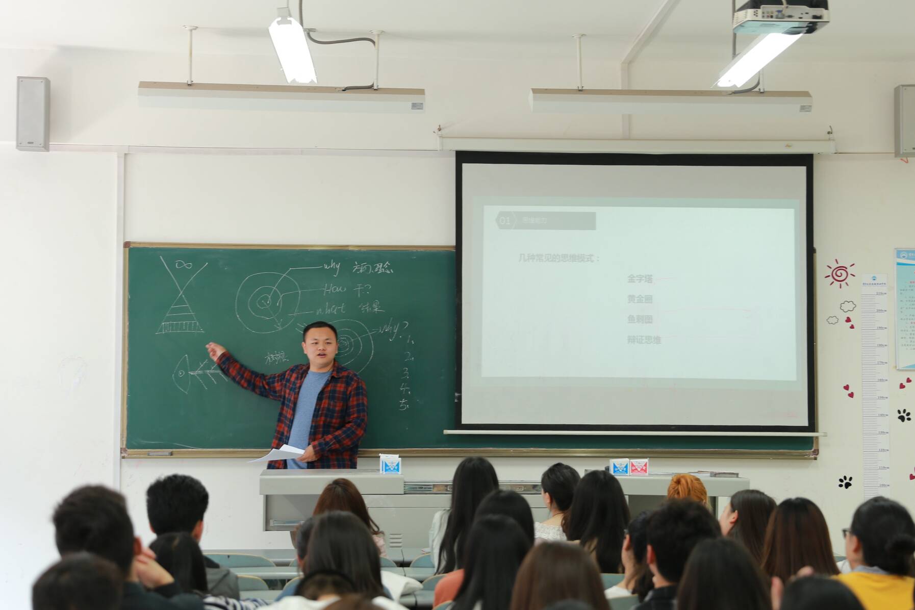 随后又从思维能力、执行力、责任心三个方面对个人素质提升进行讲解。为了让同学们更加容易明白,龚老师用最为常见的金字塔思维模式,“why”、“how”、“what”三个单词构成的黄金圈思维模式以及鱼刺图思维分解法,辩证思维法给同学们举例,让同学们学会在处理问题之前要学会理清思路,锻造思维,以提高做事效率。此次培训会的最后,龚老师引用李海峰教授在团干培训上讲到的:“责任心=职业精神=主动意识+服从意识+规则意识”,很好地诠释了责任心的深刻内涵。更建议大家在班干部的岗位上尽心尽责,踏实工作,积极奉献,全面成长成才,给以后的职业生涯做好铺垫。