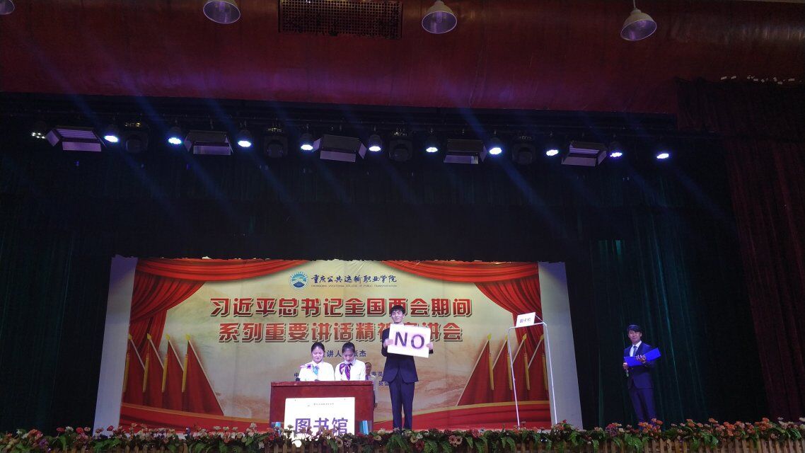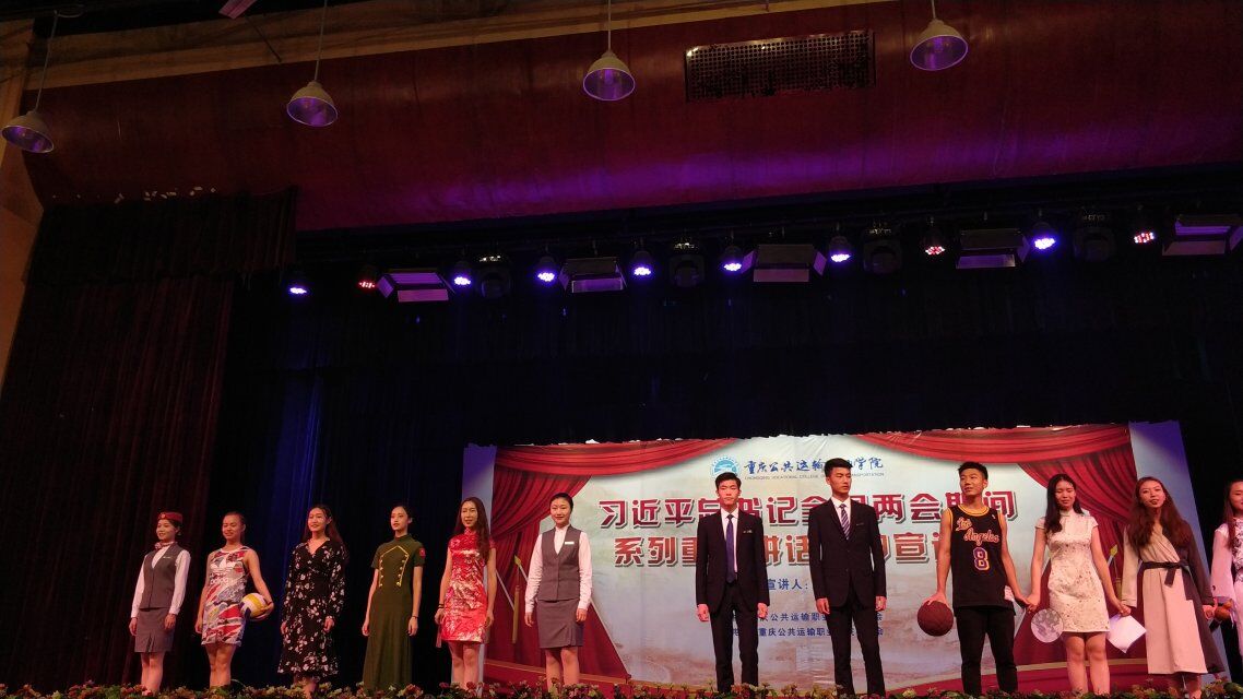为进一步提升当代大学生的文明形象,彰显中国传统礼仪风采,传承中华民族礼仪文化,展现新时期大学生青春活力,营造校园文化氛围。2018年5月9日晚,澳门正规电子游戏平台运输贸易系“中国梦,礼仪行”礼仪大赛决赛在学术报告厅举行。运输贸易系党支部副书记曾庆东老师,学工办主任古曼筝老师,团总支书记谢玉琴老师,全体辅导员老师和近800名学生观看了决赛表演。