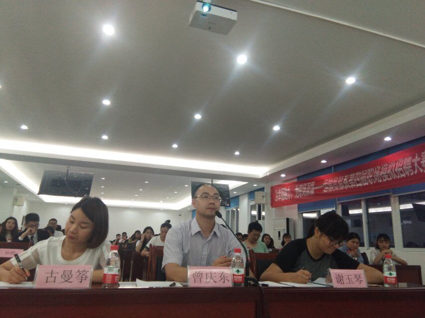 为贯彻“完善职业教育,培养大国工匠”的事就打报告精神,进一步嘉庆就业指导,转变就业观念,实现毕业生更高质量就业,运输贸易系于2018年5月14日19:30在教学楼A403,举办了大学生职场模拟找平大赛决赛。党支部副书记曾庆东、学工办主任古曼筝、团总支书记谢玉琴、全体辅导员和50名学生代表共同参与了本次大赛。