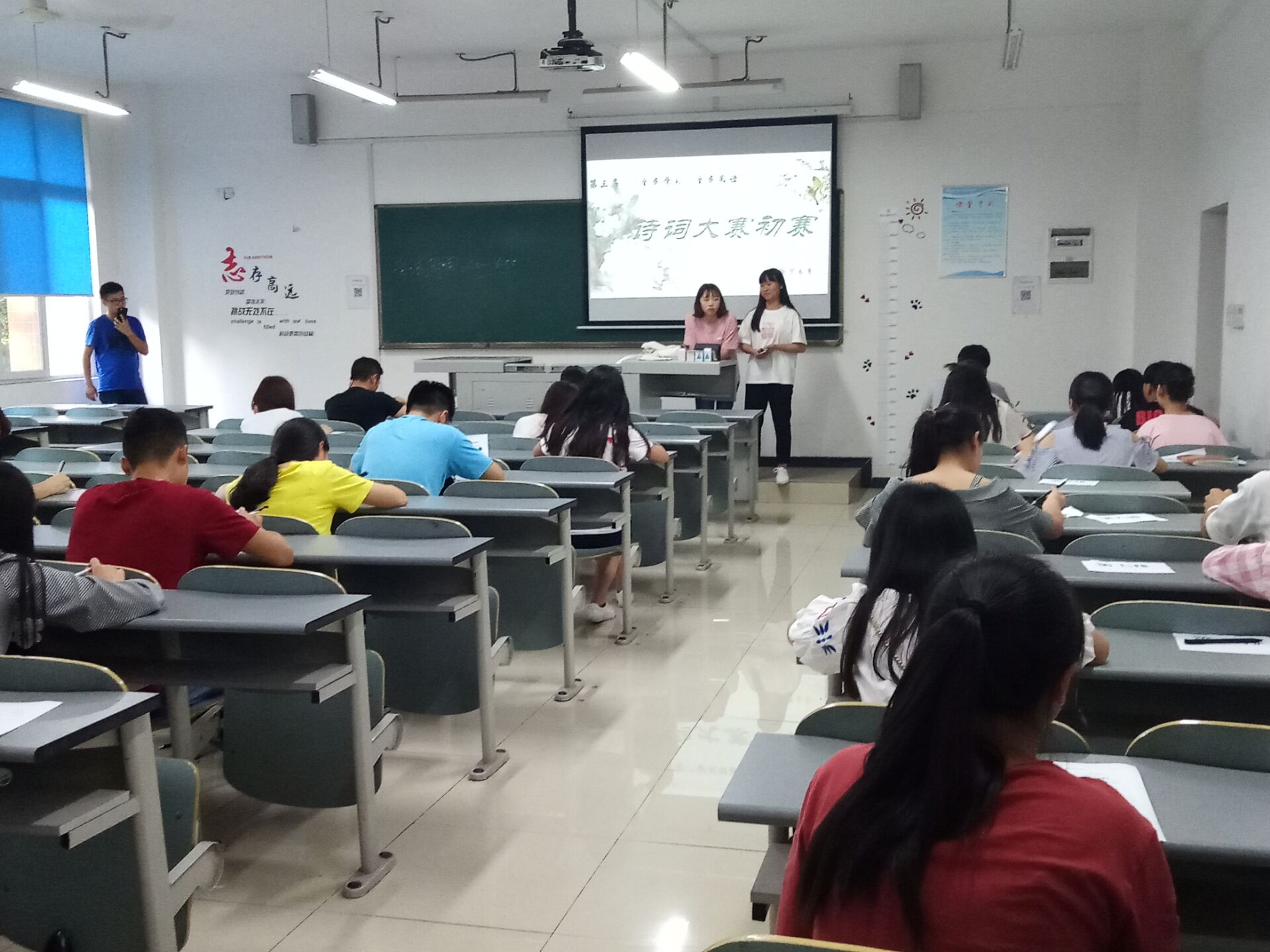 为崔进校园建设,丰富校园文化生活,引导学生感悟文学的内涵和人生的哲理,放飞思维,陶治情操。我系在2018年5月14日下午18:30 在教学楼B201、B203进行了“全民学习 全民阅读”诗词大赛的初赛,本次活动由我系学生会学习部于宣传部共同组织。