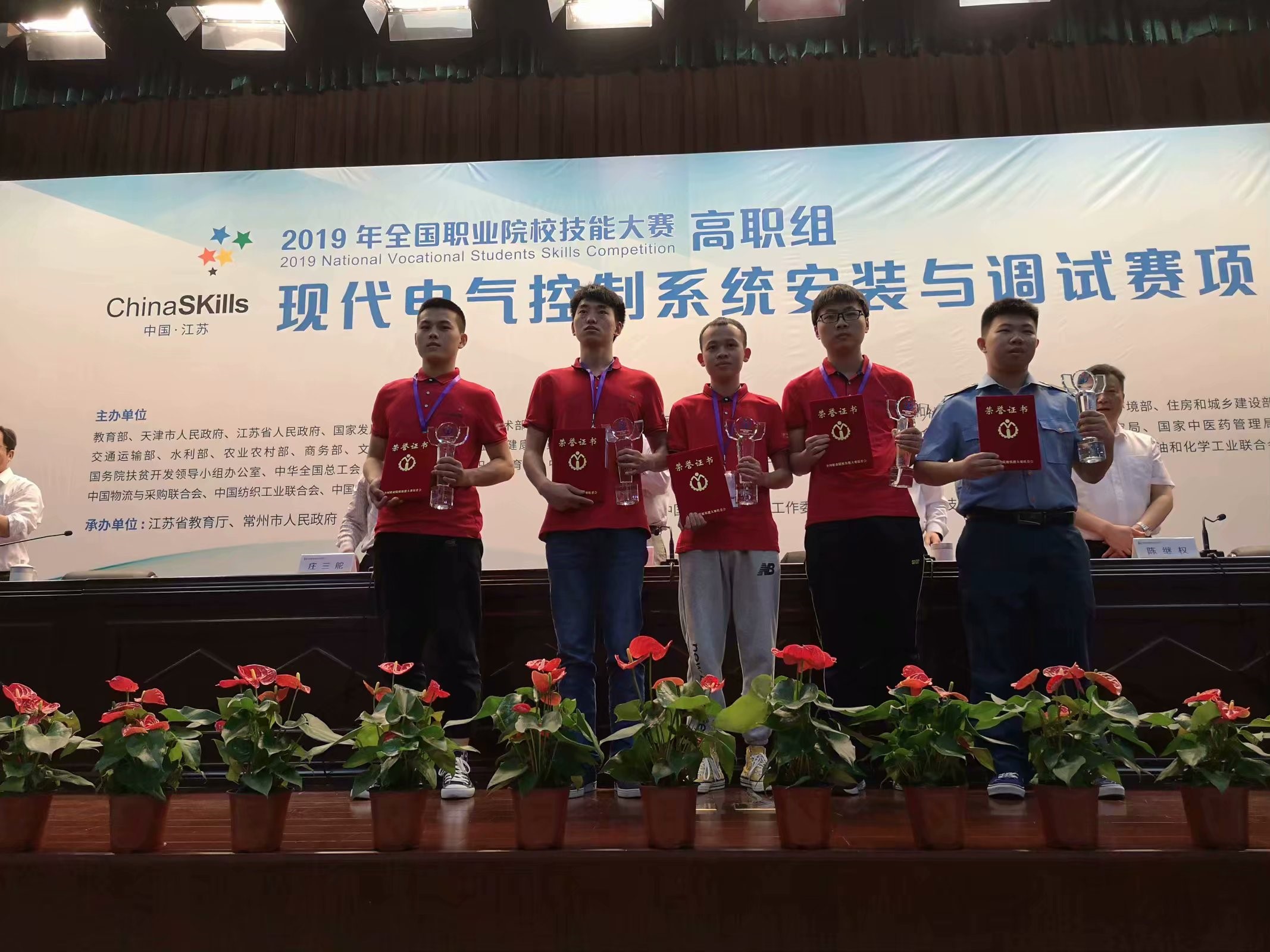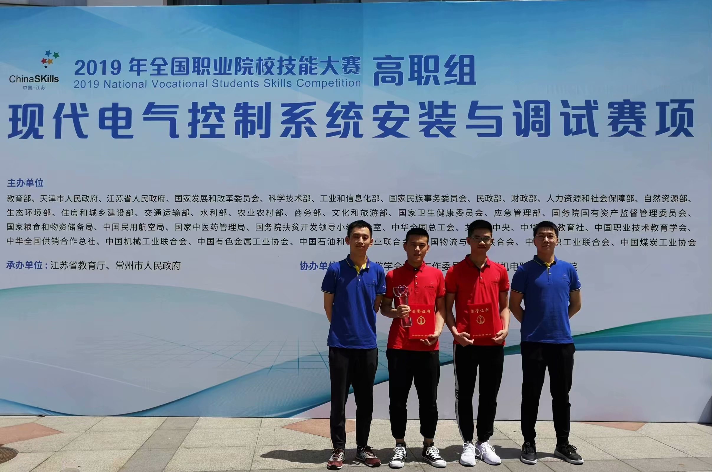 我系学生在2019年全国职业院校技能大赛高职组“现代电气控制系统安装与调试”赛项荣获第一名