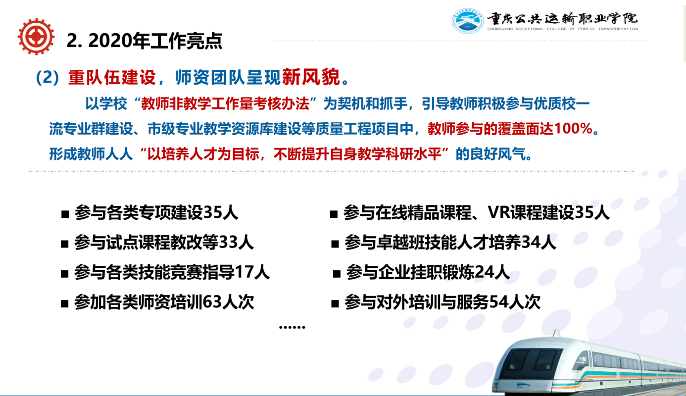 接着,牟副院长对我院2021年度工作计划进行了部署。他强调新的一年里,智慧交通学院将以学校“十四五规划”、“提质培优行动计划”为导向,以培养高质量人才为核心目标,以产教融合、校企合作为建设途径,对标“双高”建设任务,聚力发展提升,努力打通提升人才培养质量的“最后一公里”。
