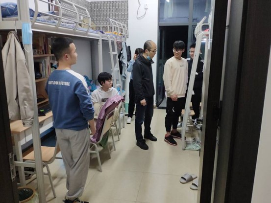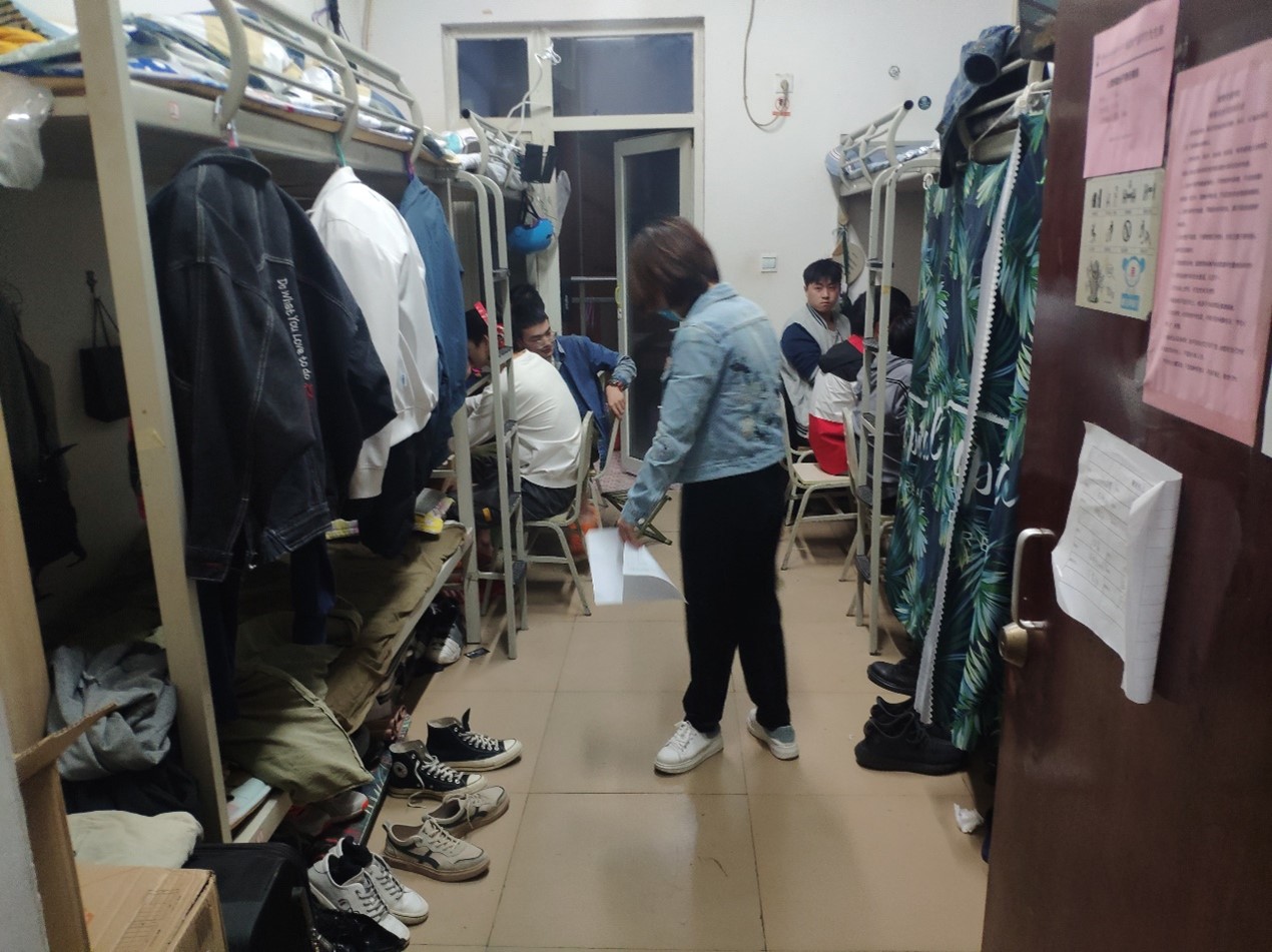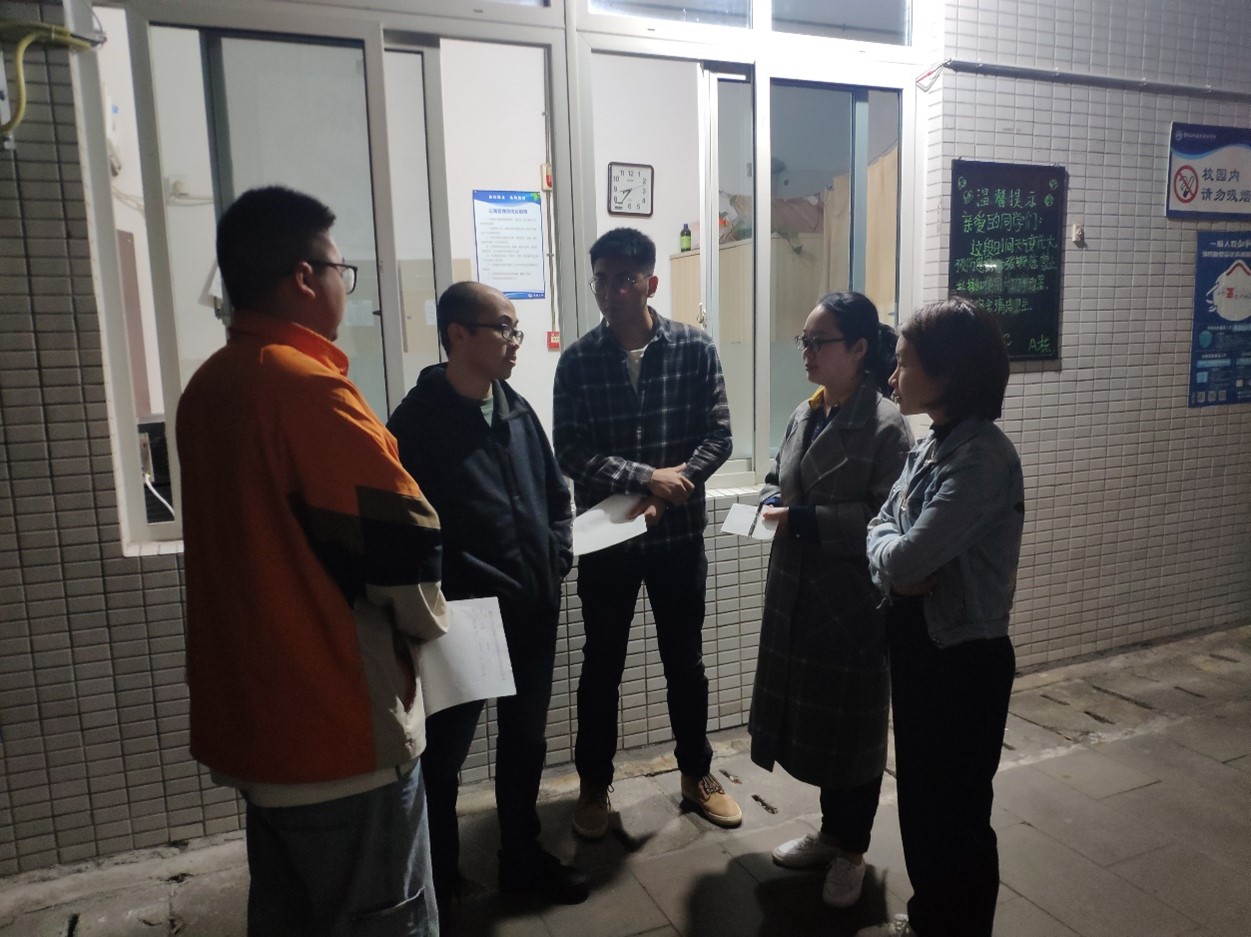 为消除安全隐患,营造整洁、文明、和谐的学生宿舍环境,加强舍风建设,切实保证学校安全稳定,有效防范各类事故发生,确保同学们的人身财产安全,建设美丽、平安和谐的校园。4月1日晚8点30分,在清明节假期即将来临之际,由学院党总支书记郭昌盛与古曼筝主任、袁延涛老师、赵桢老师、温阳阳老师、袁亮老师、以及刁起萌老师组成的检查小组对智慧交通学院主校区、新校区学生宿舍展开清明节前宿舍内务和安全检查工作。
