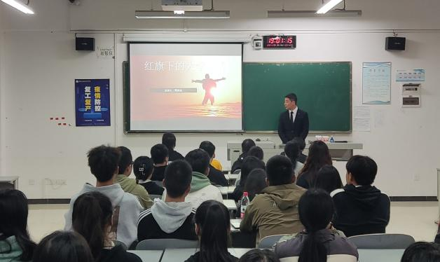 2021年10月19日晚上19:00“忆光辉党史,谋崭新征程”系列党史学习教育在教学楼C205教室继续开展,本次主题是“红旗下的大学生活”,由2020年智慧交通学院国家奖学金获得者蒋其全同学和同学们分享从一名退伍军人成为国家奖学金获得者的求学之路。