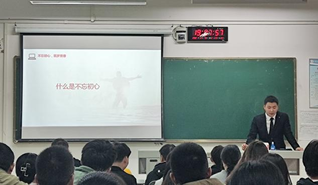 蒋其全同学从丁晓兵的英雄事迹、自己的军旅生涯以及自己求学路上如何坚守不忘初心,筑梦青春的心路历程。和同学们探讨当代大学生应有的志向和精神。