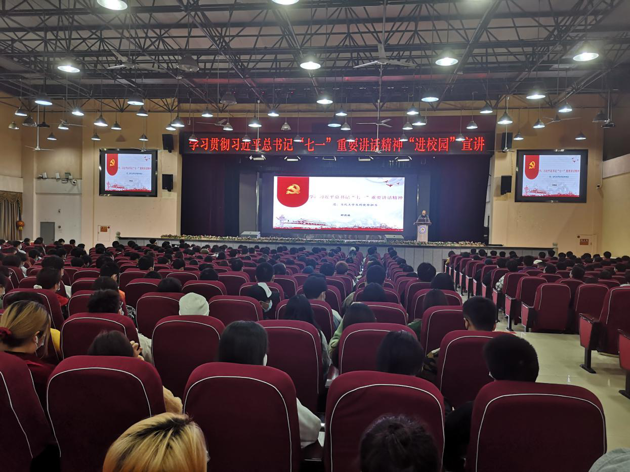 按照“对象化、分众化、互动化”的宣讲思路,从10月20日起,党总支将宣讲对象分为教职工、学生干部、学生三类群体,由党总支书记郭昌盛进行宣讲。在紧密围绕学习贯彻习近平总书记“七一”重要讲话精神的基础上,分别从高校教师的立德树人根本任务、学生干部的担当奉献、大学生的使命责任号召师生将小我融入大我,立强国志、强强国能。