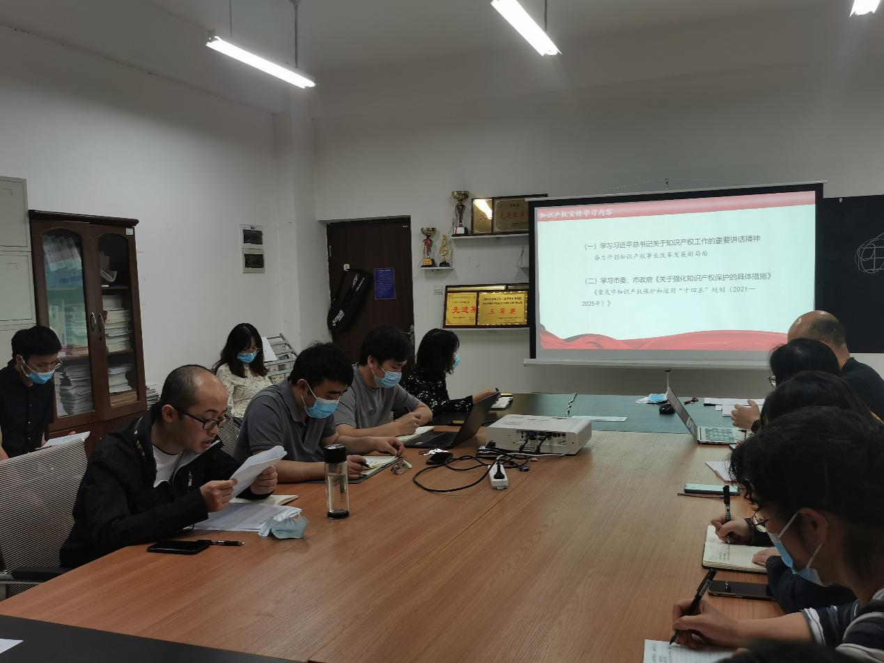 智慧交通学院 学院动态 专业介绍 师资队伍 党建动态 学工动态 就业指南 教学科研 学院动态首页 > 智慧交通学院 > 学院动态 > 知识产权保护专题学习会 来源:学院动态发布时间:2022-04-28 11:05访问量: 2022年4月25日,智慧交通学院在C101会议室召开了知识产权保护专题学习会。会议首先由党总支书记郭昌盛领学习近平总书记关于知识产权工作的重要讲话精神、市委市政府《关于强化知识产权保护的具体措施》。其次,王凤姣老师分享交流知识产权科普知识、《知识产权强国建设纲要(2021-2035年)》学习心得。 会议倡导全院老师要加强遵守知识产权保护的意识。 本次会议主持人为郭昌盛,参加人员为智慧交通学院全体教职工。 (文/智慧交通学院陈红星 图/陈晓利)