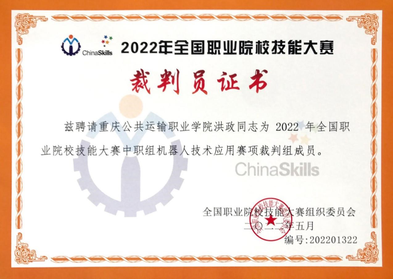 我院洪政教师受邀担任2022年全国职业院校技能大赛中职组“机器人技术应用”赛项裁判
